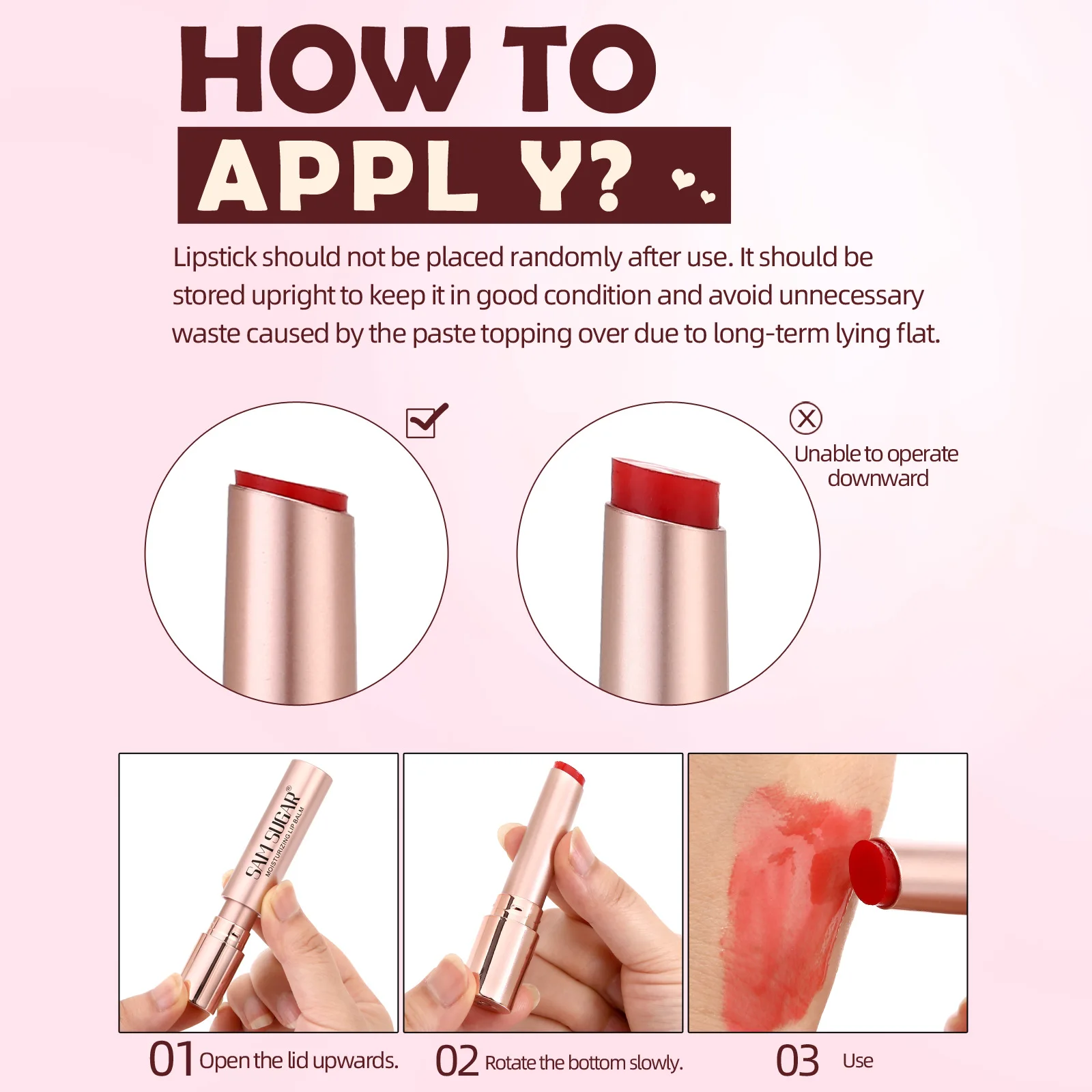 Use it at any time to improve lip dryness and moisturize the whole day. It can also be used as a lipstick base.