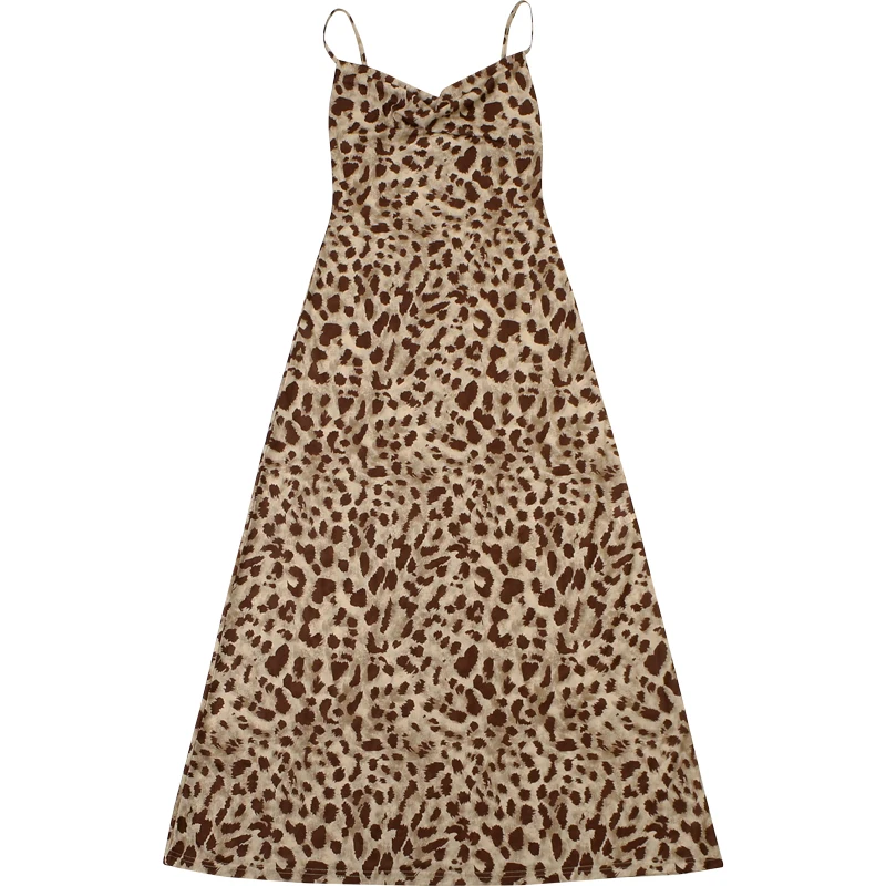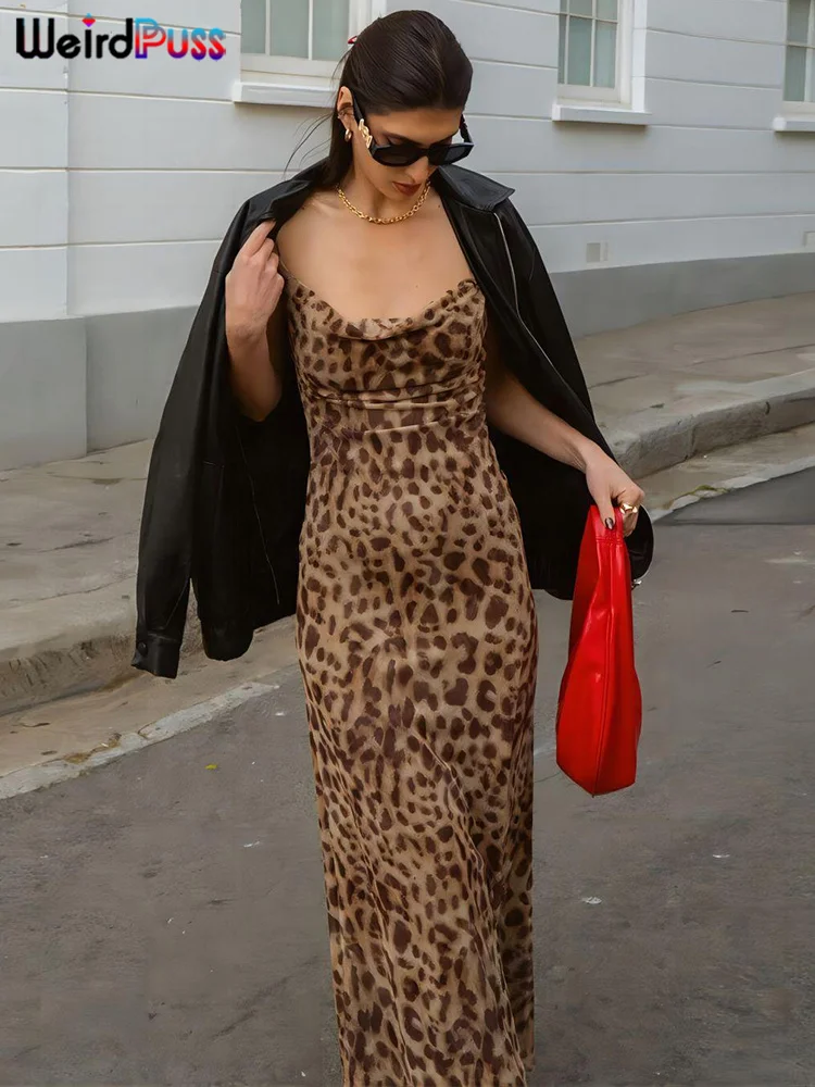 Weird Puss Leopard Print Dress Woman Summer Sexy Swing Collar Spaghetti Straps Backless Ruffles Party Clubwear Skinny Vestidos