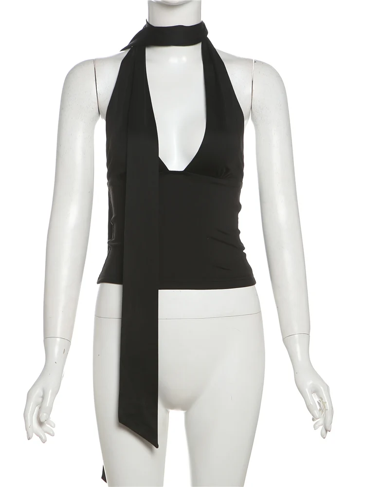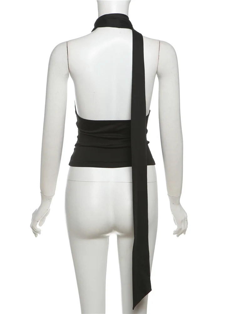Weird Puss Scarf Tank Tops Women Backless Irregular Summer Trend Hottie Hipster Trend Sexy Wild Classic Streetwear Basic Vest