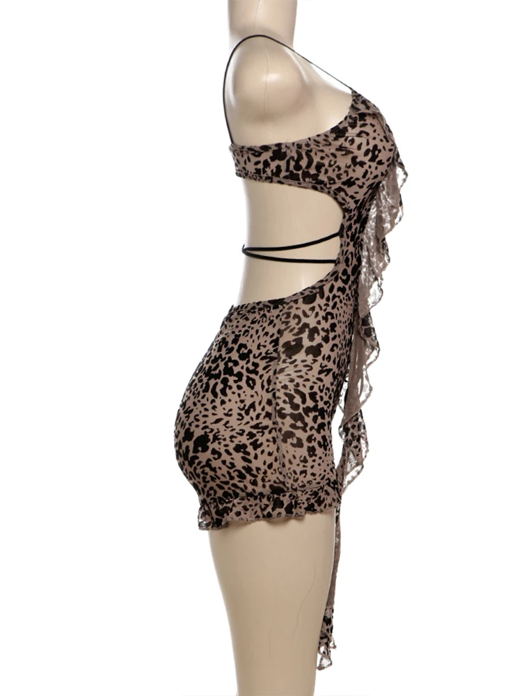 Weird Puss Sexy Summer Romper Women Flocking Leopard Print Backless v-Neck Tassel Coquette Thin Midnight Party Workout Playsuits