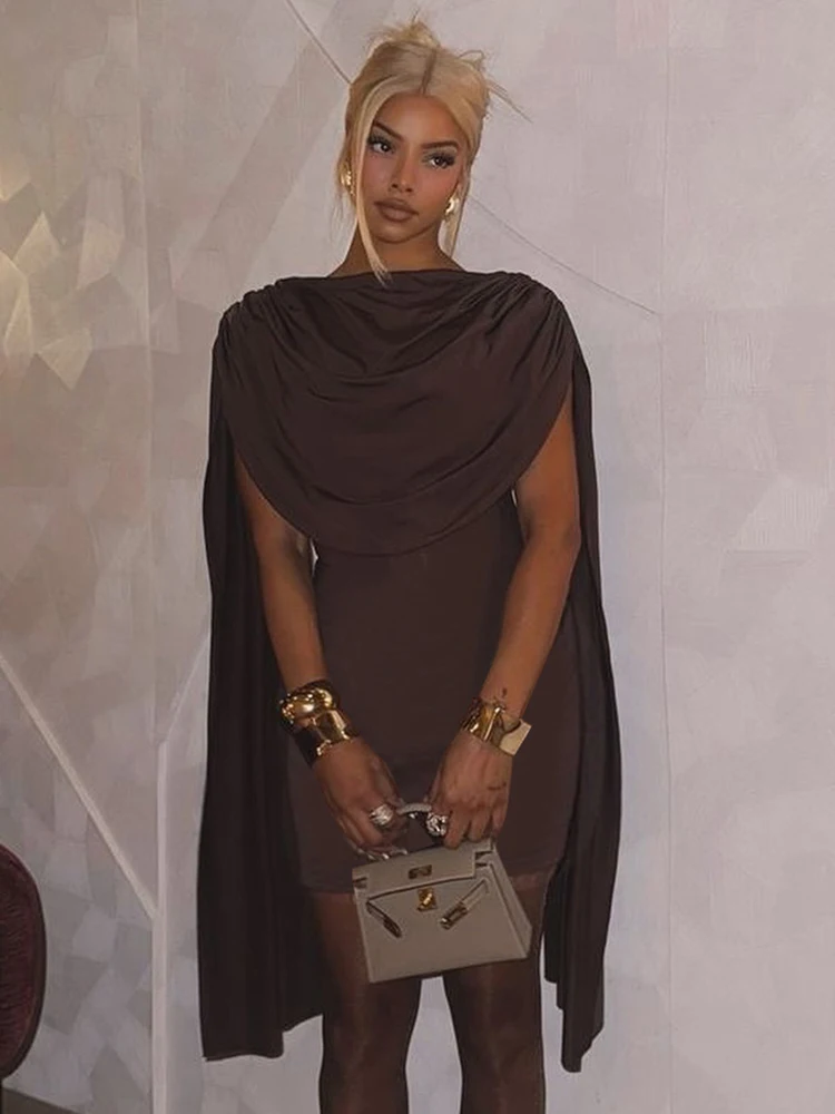 Weird Puss Shawl Patchwork Dress Women Ruched Elegant o-Neck Skinny Sleeveless Vacation Fashion Trend Casual Simple Mini Bodycon