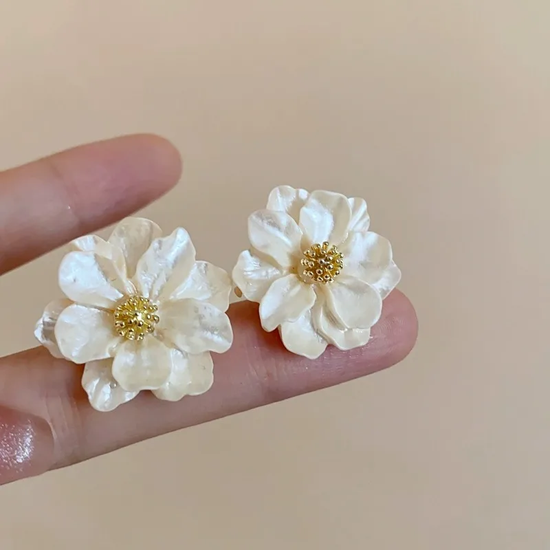 White Acrylic Flower Women’s Stud Earrings Folded Florals Korean Fashion Sweet Petals Irregular Female Earrings 2025 new in