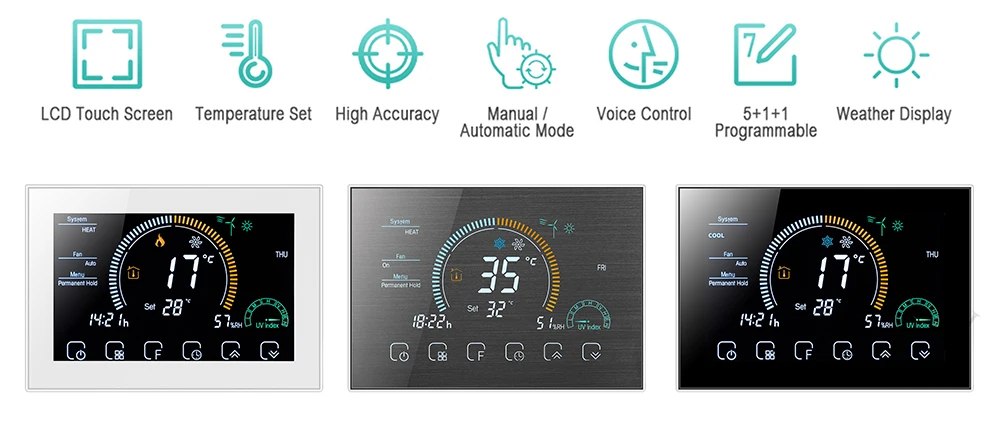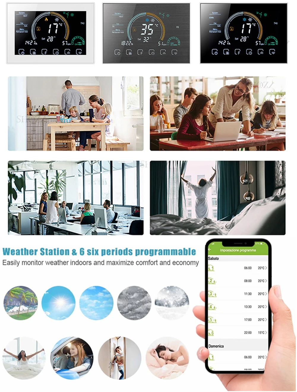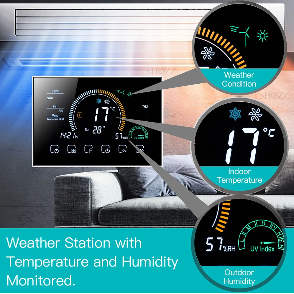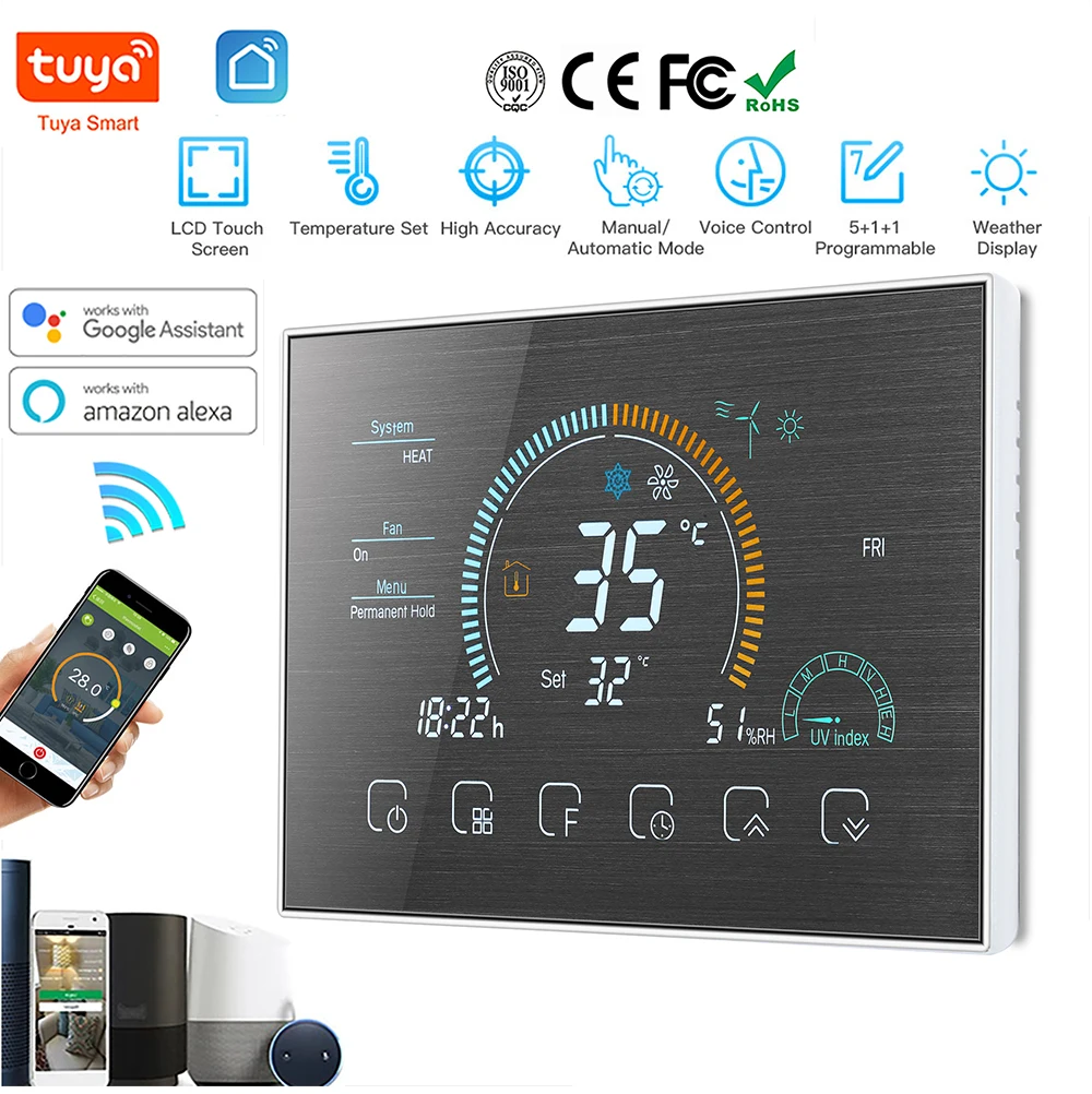 WiFi Smart Device Central Air Conditioner Thermostat Temperature Controller 3 Speed Fan Coil Unit Work with Alexa Google Home