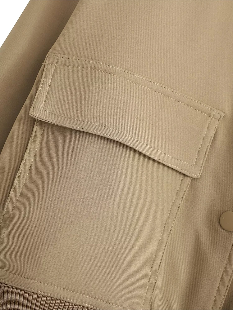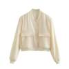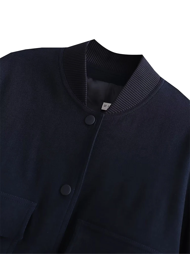 Willshela Women Fashion Solid Bomber Jackets Coat With Pockets V-Neck Single Breasted Long Sleeves Female Chic Lady Outfits