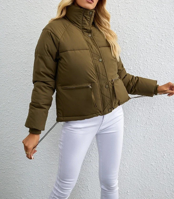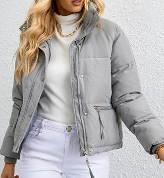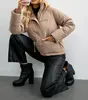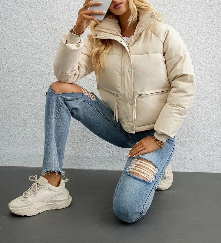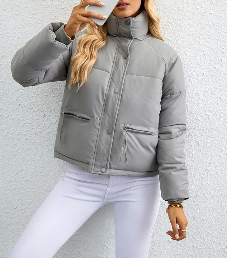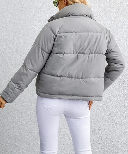 Winter Coat for Women Autumn Fashion Zipper Pocket Design Casual Stand Collar Long Sleeve Plain Daily Baggy Puffer Jacket