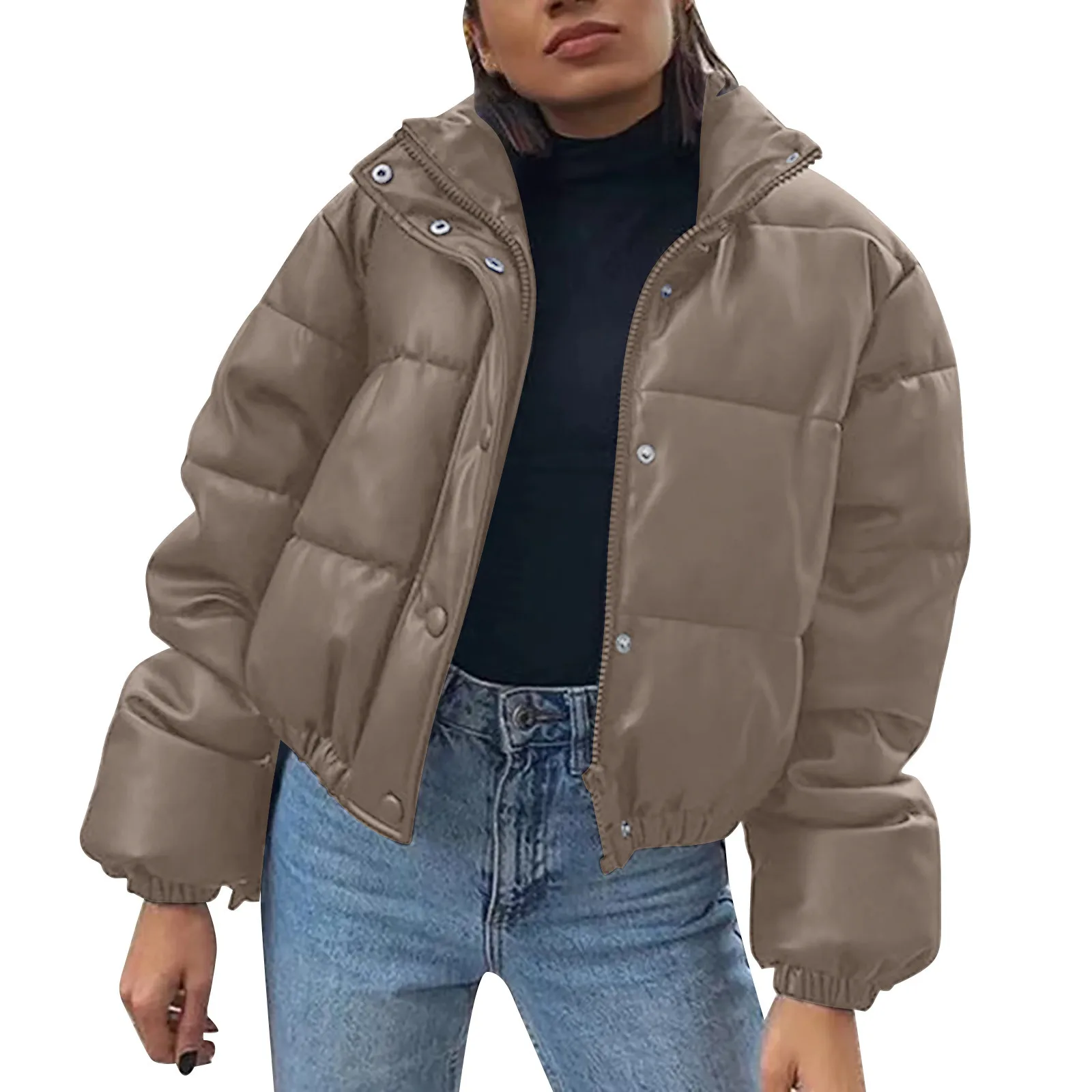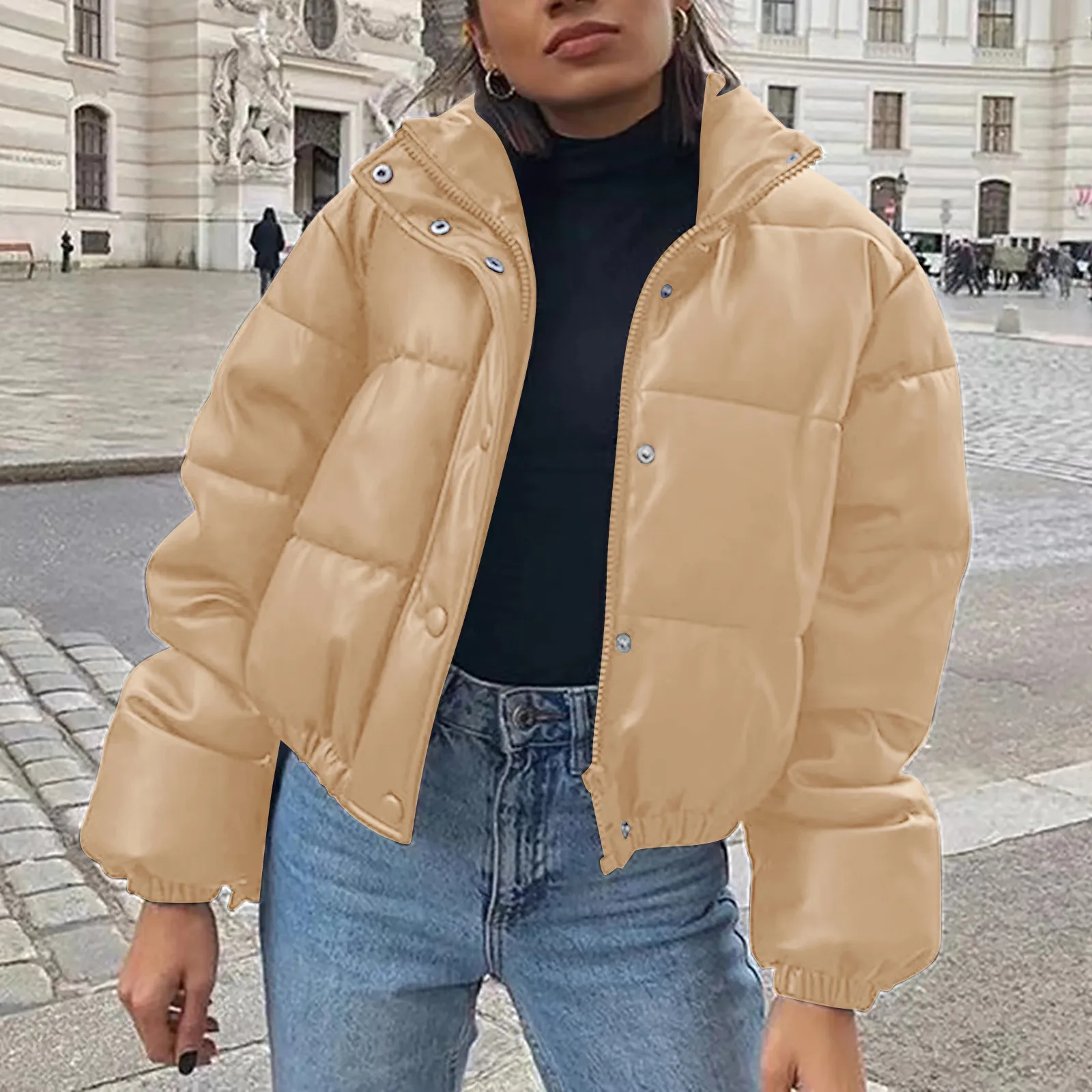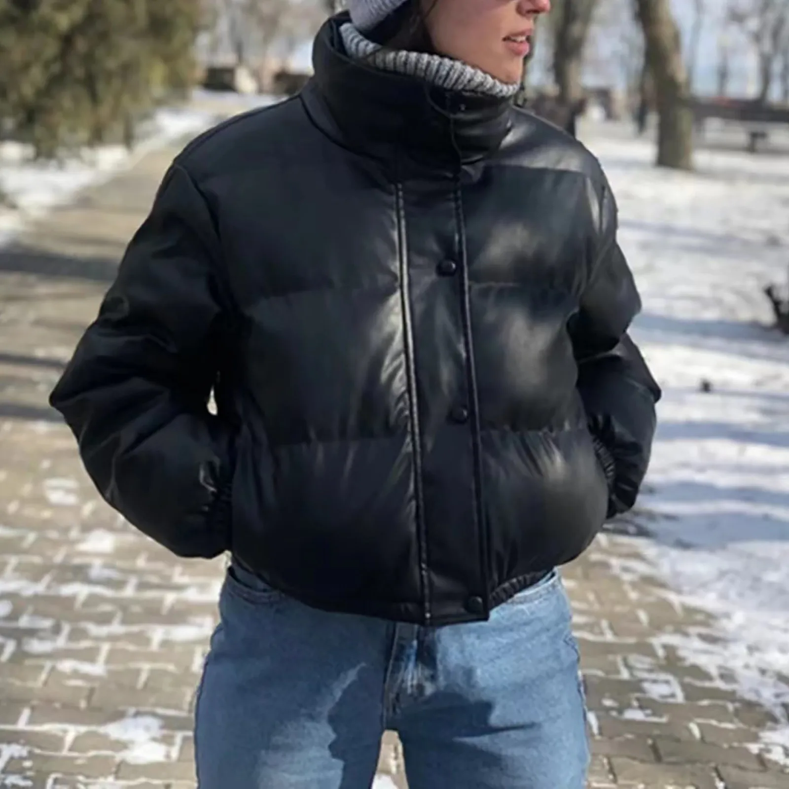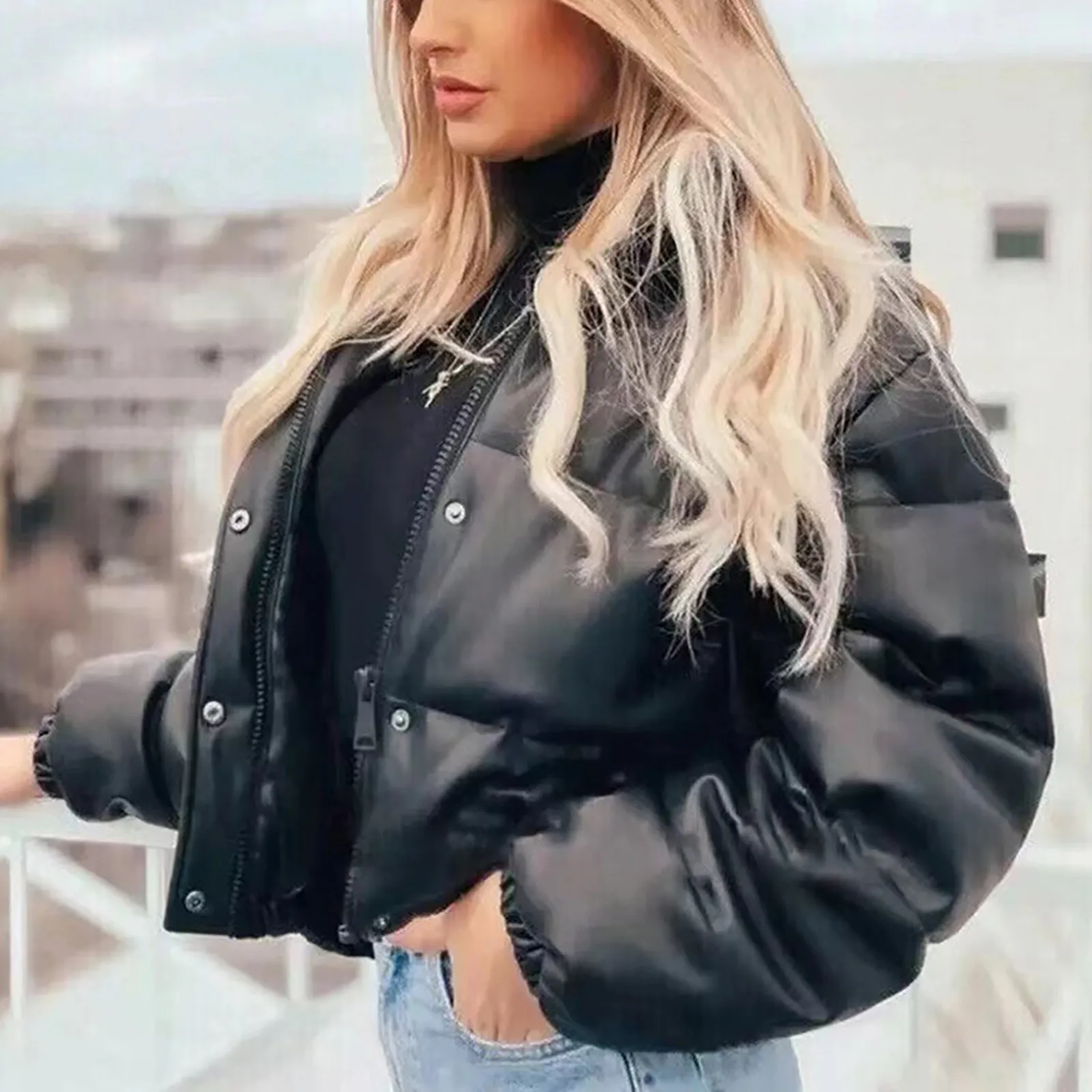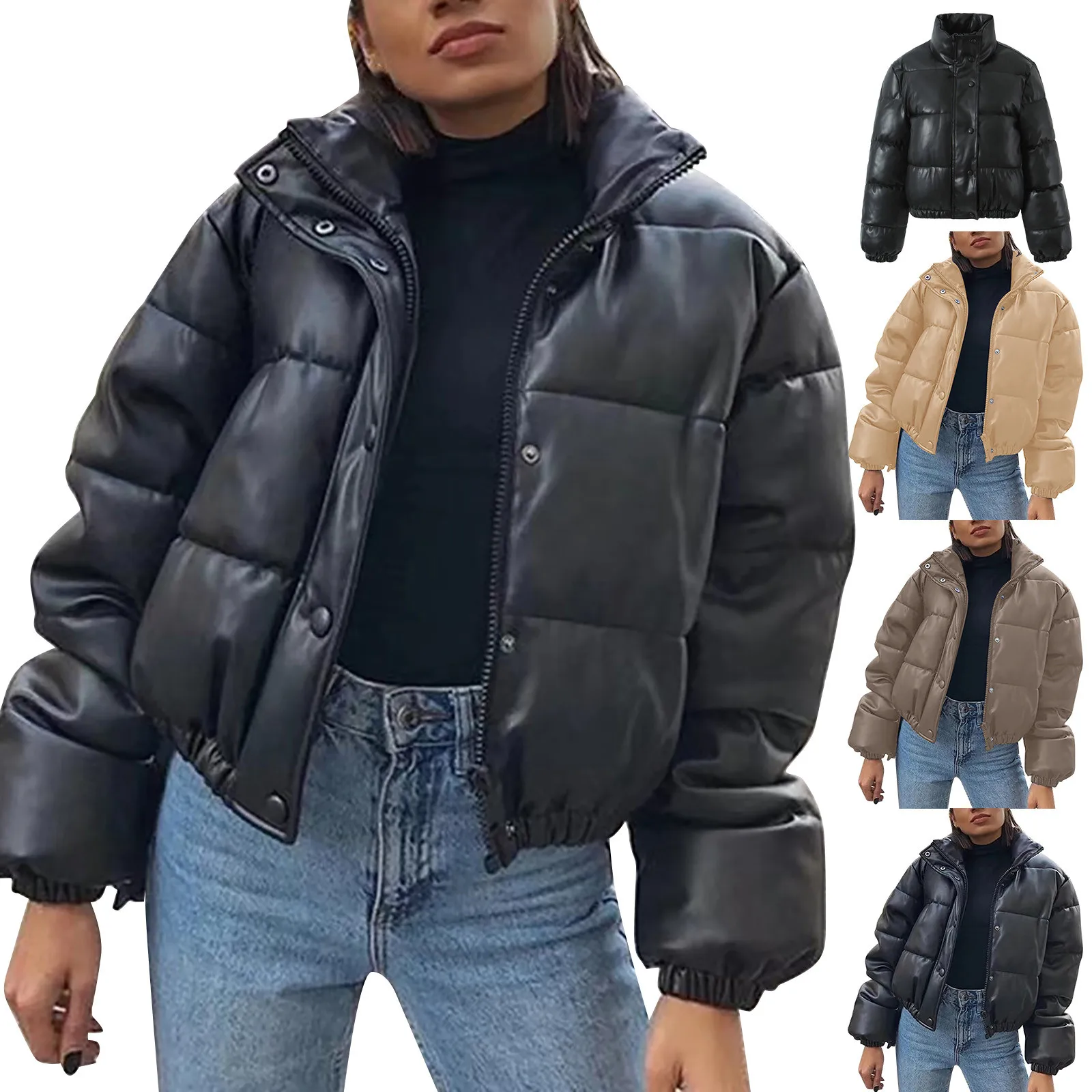 1. Women’s Winter Casual PU Leather Cotton Jacket with Stand Collar – Stay cozy and stylish this winter with our short-length, insulated coat. Made from high-quality PU leather and cotton, it provides excellent warmth and comfort.