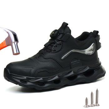 Waterproof Work Safety Shoes Men Women Indestructible Safety Boots Rotating Button Work Sneakers Protection Steel Toe Shoes
