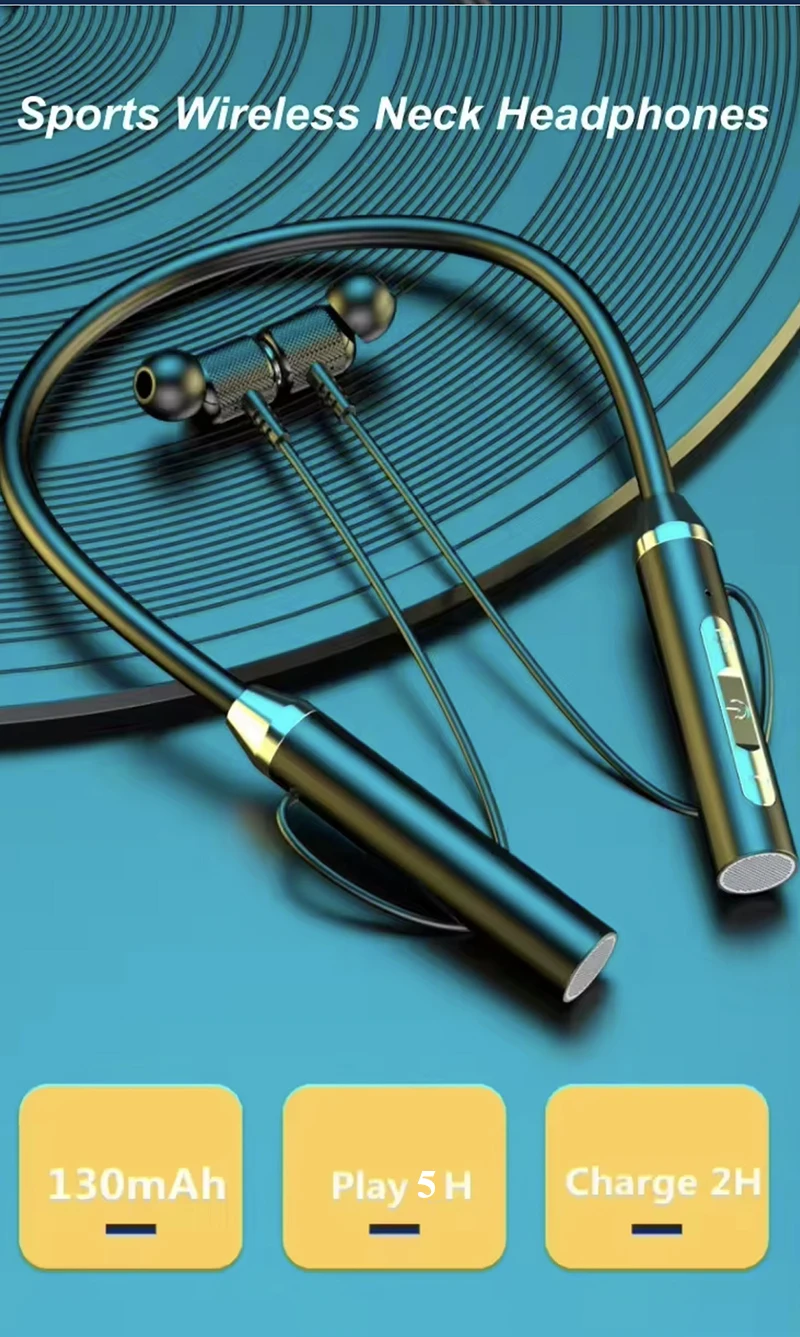 Wireless Bluetooth Earphones Neckband Headphones Gaming Stereo Sports Headset Halter Waterproof Magnetic Earbud with LED Display