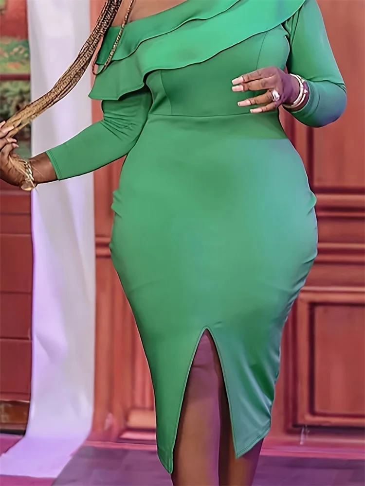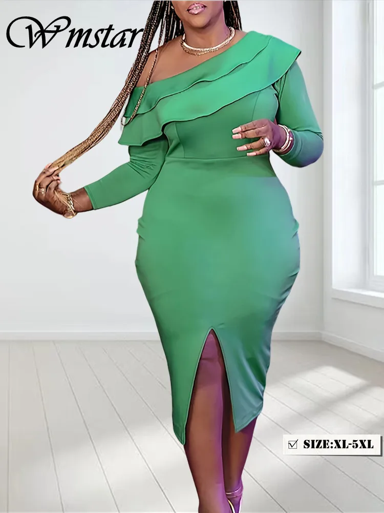 Wmstar Plus Size Dresses for Women Office Lady Bodycon Stretch Slip Hem Elegant Fashion Maxi Dress Wholesale Dropshipping 2024