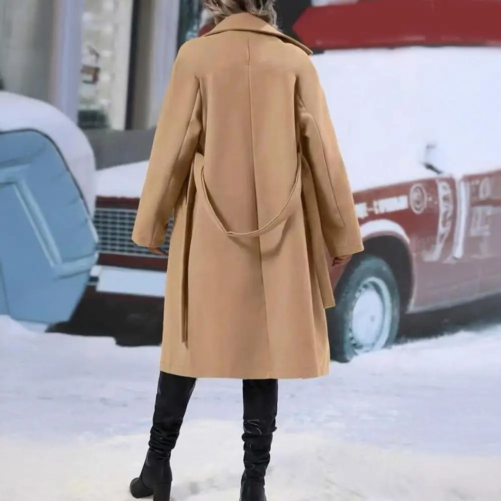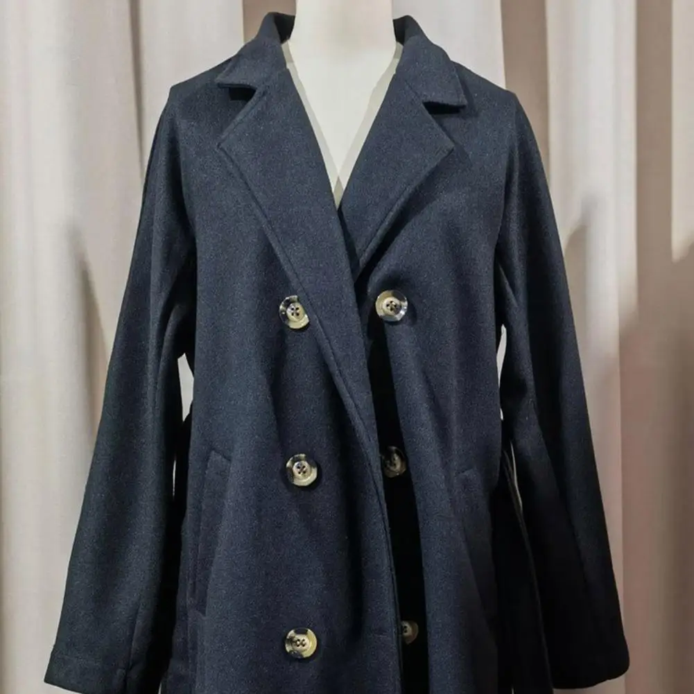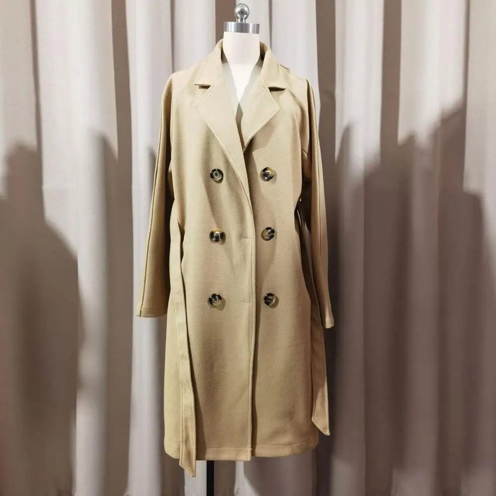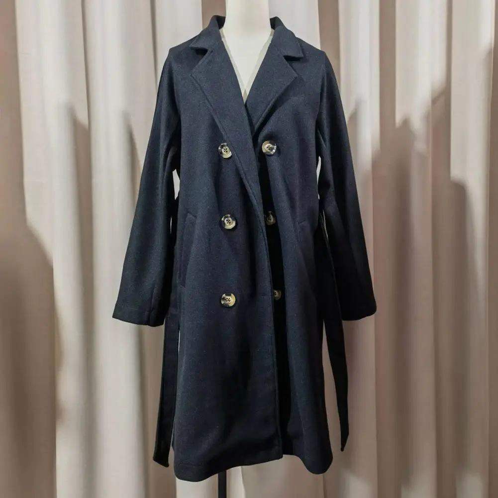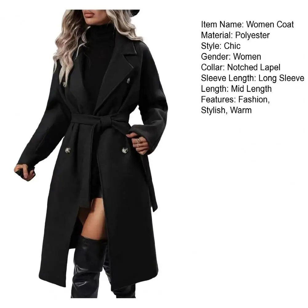 Women Casual Coat Women Windbreaker Coat Elegant Women’s Wool Trench Coat with Belt Double Breasted Overcoat for Fall Winter