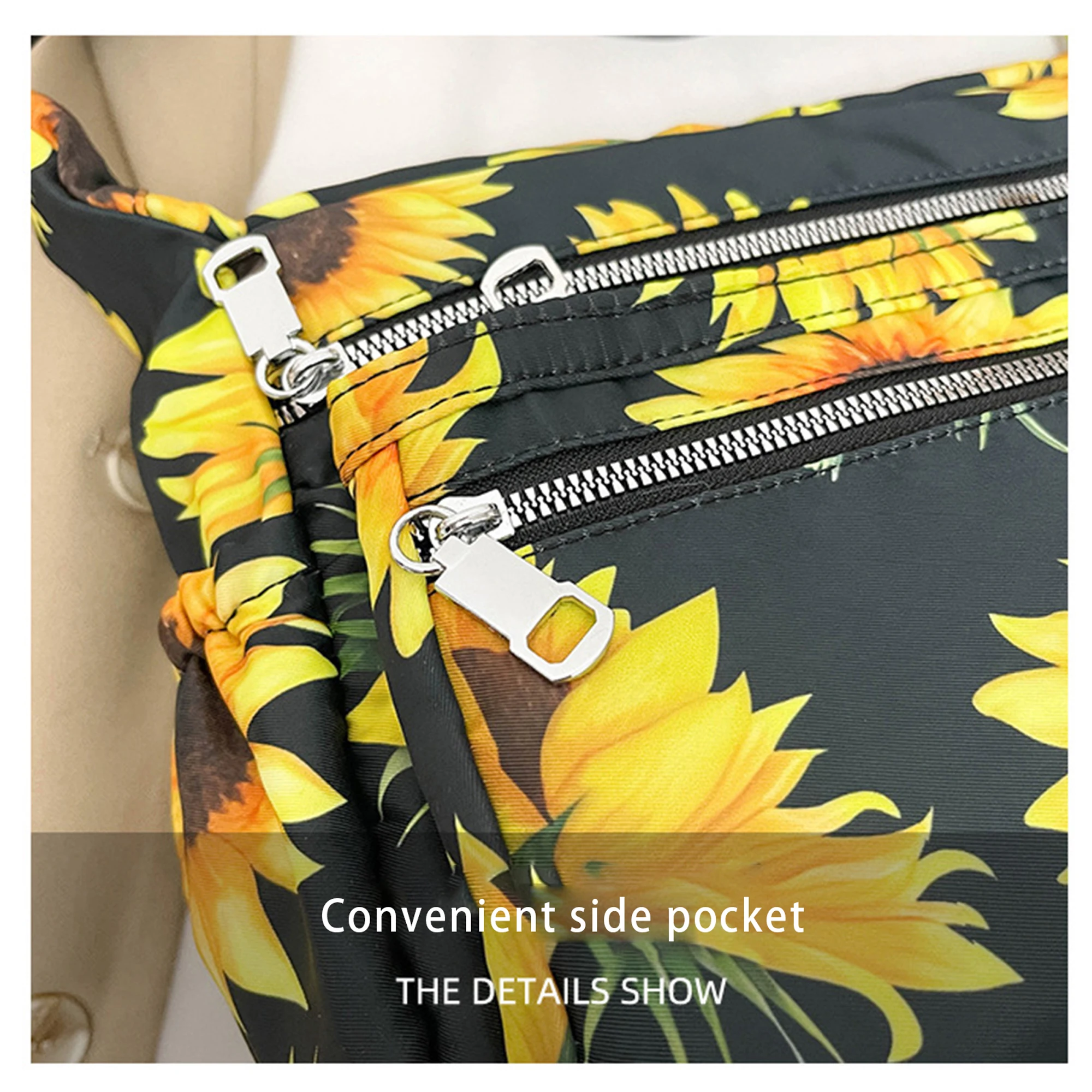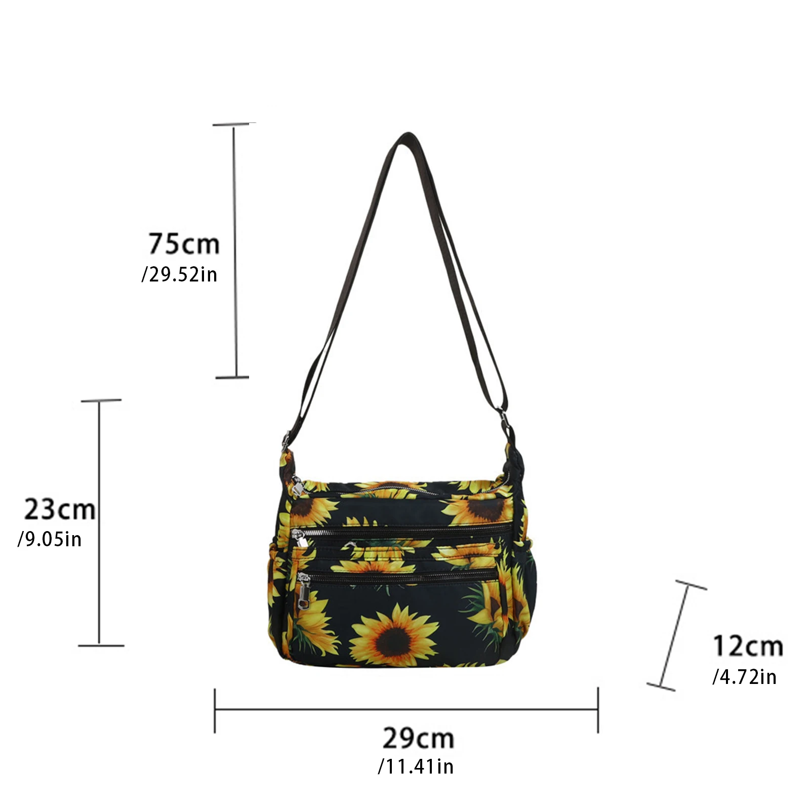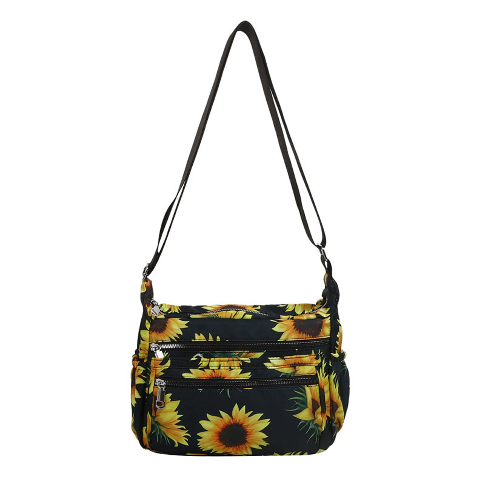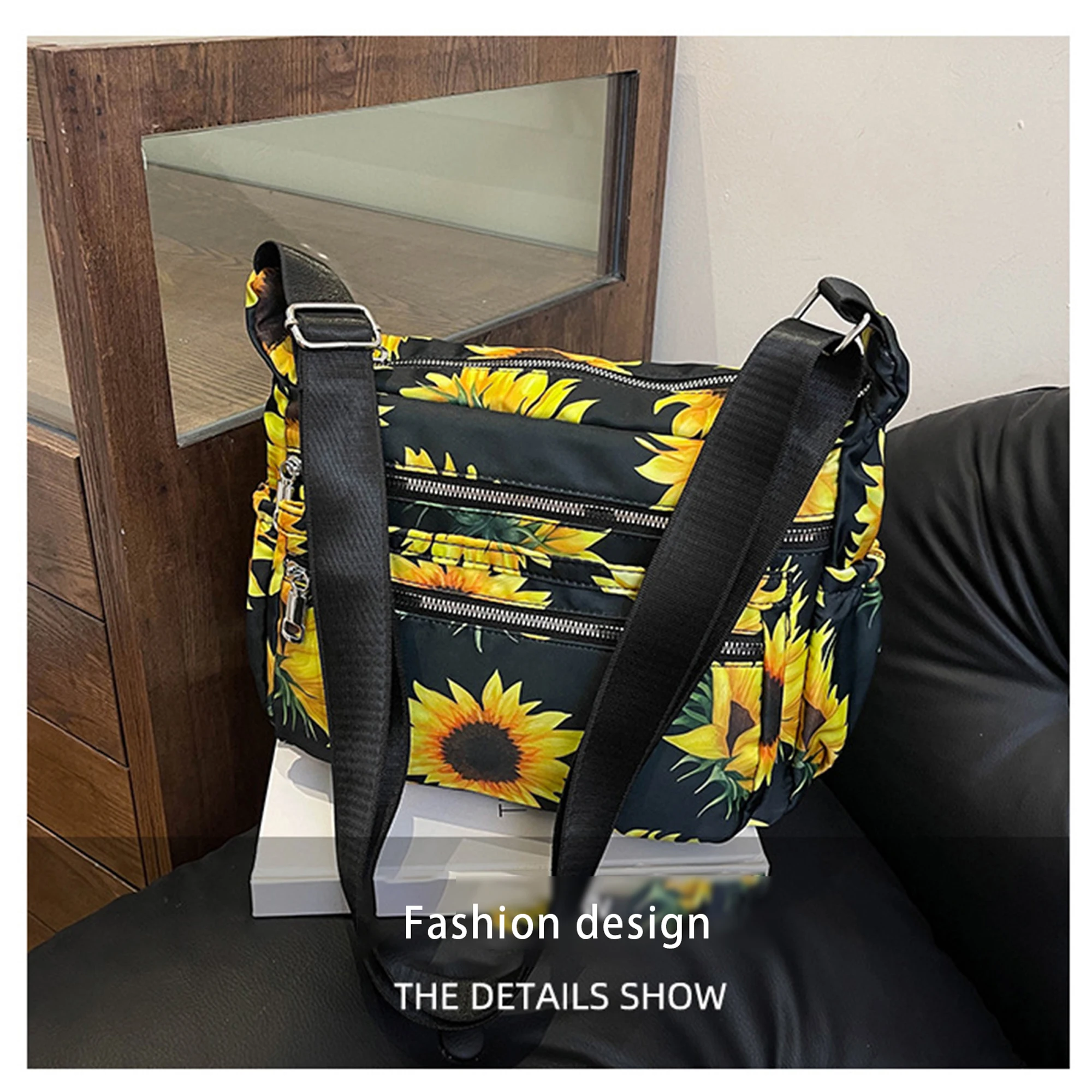 Women Large Crossbody Bag Sunflower Print Mom Purse Lightweight Shoulder Bag with Long Strap