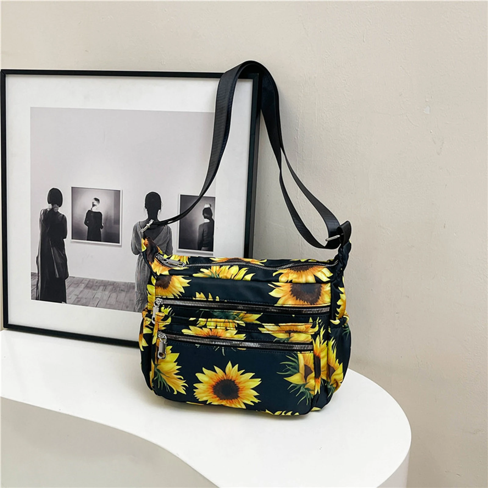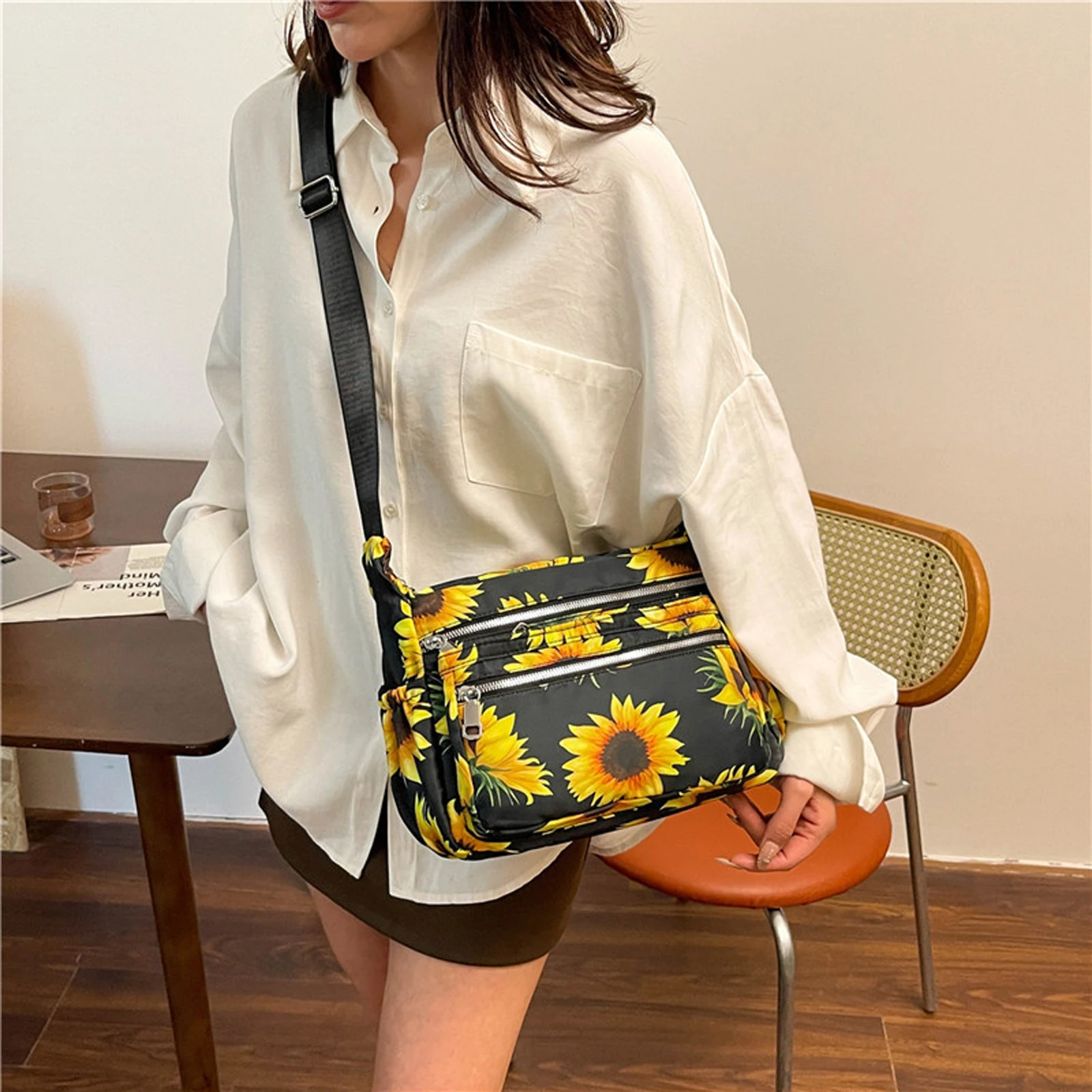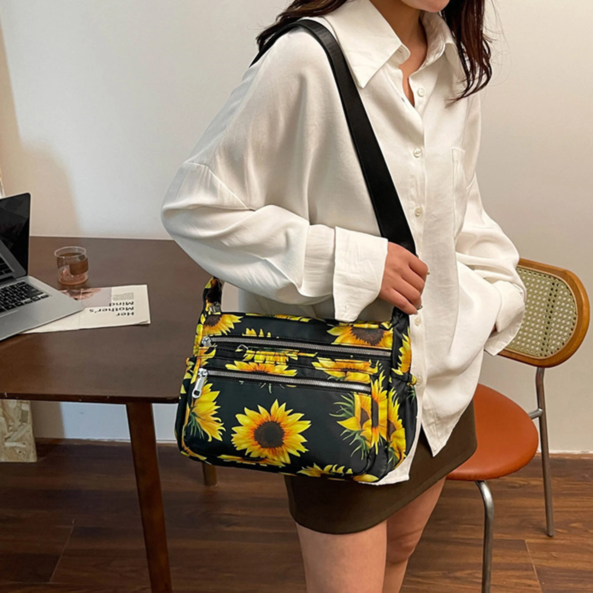 Women Large Crossbody Bag Sunflower Print Mom Purse Lightweight Shoulder Bag with Long Strap