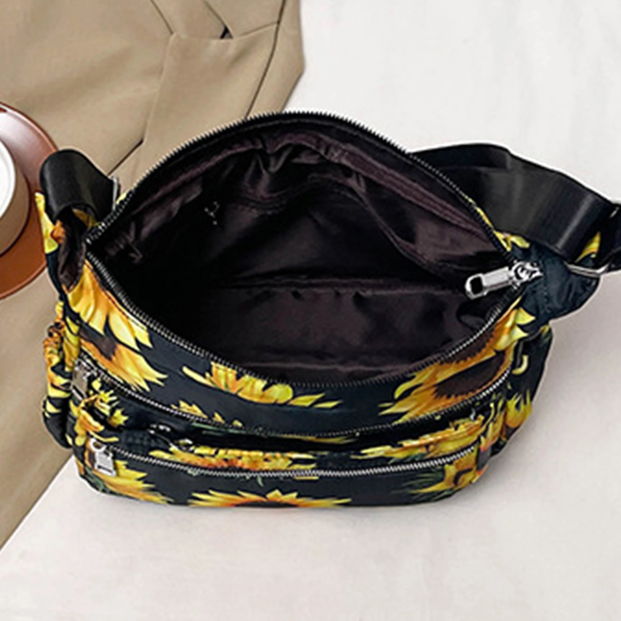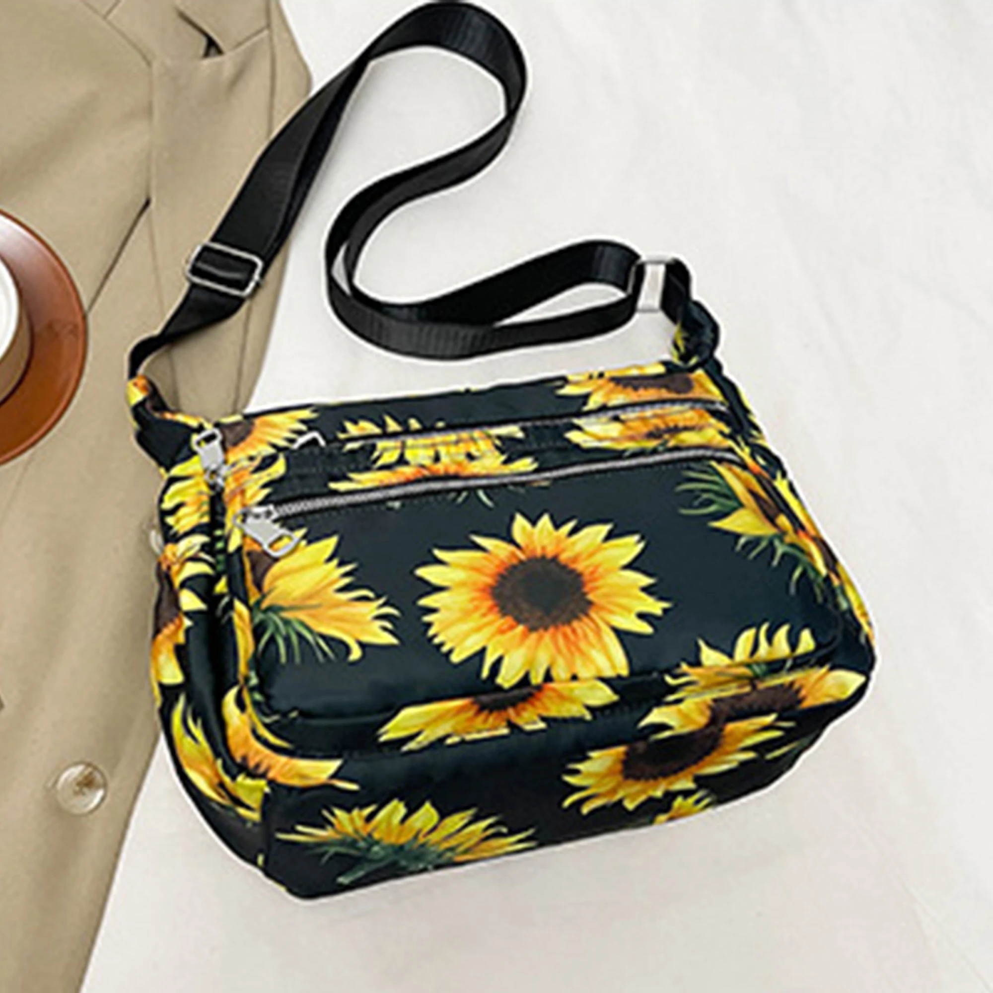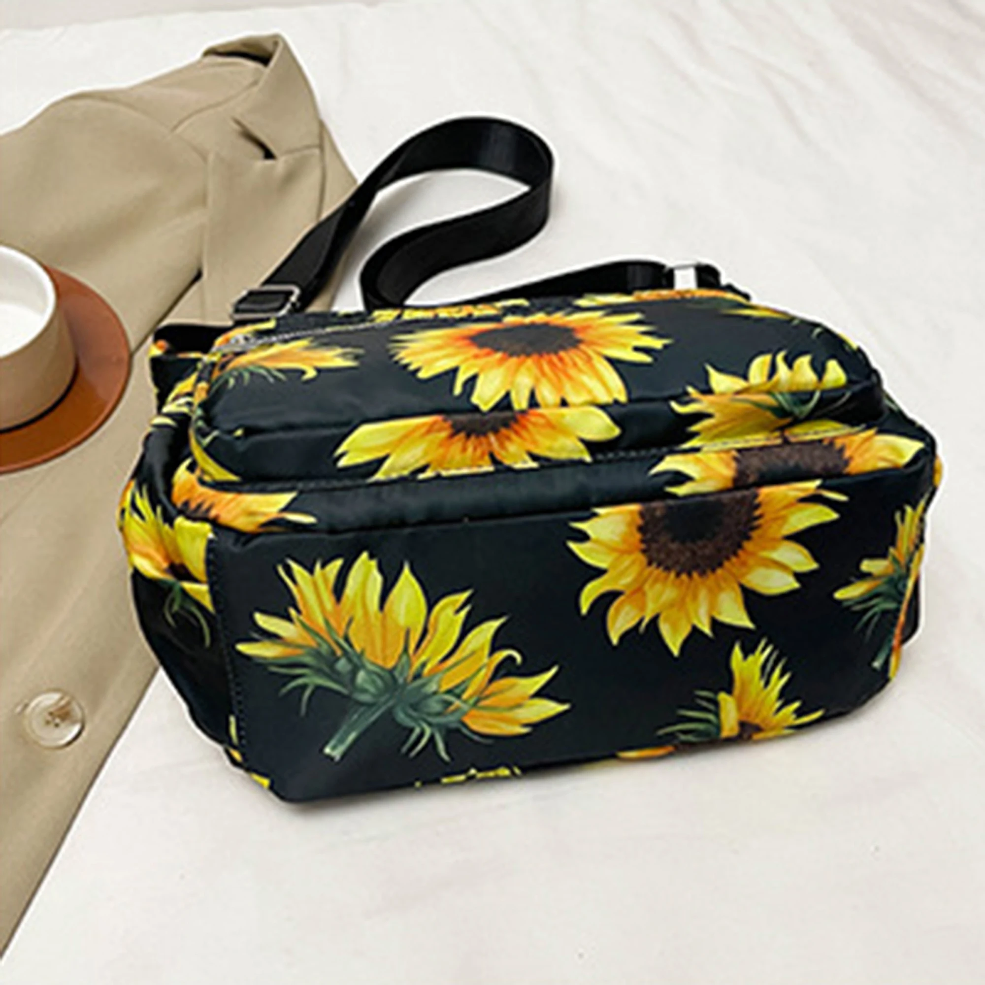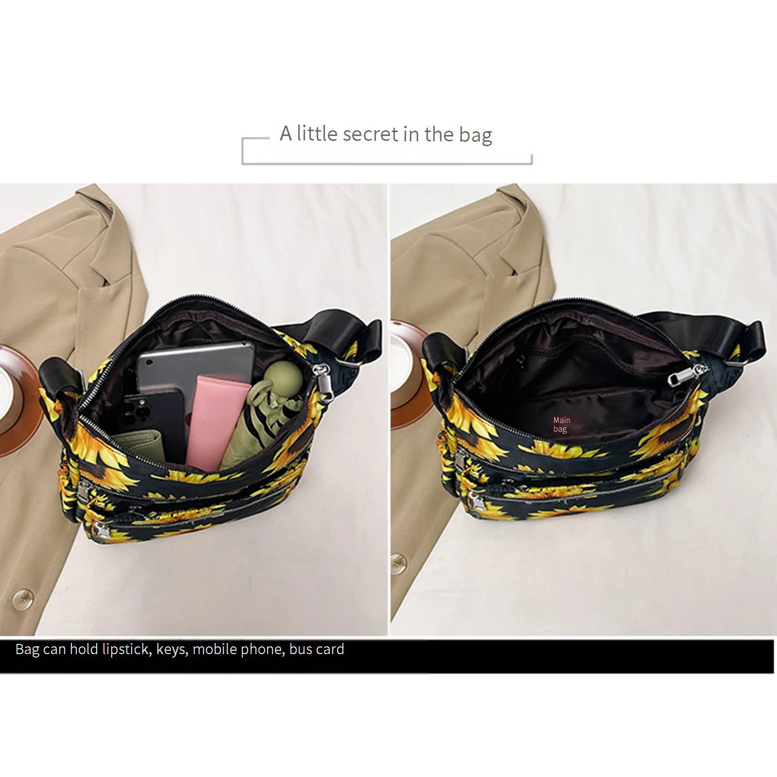 Women Large Crossbody Bag Sunflower Print Mom Purse Lightweight Shoulder Bag with Long Strap