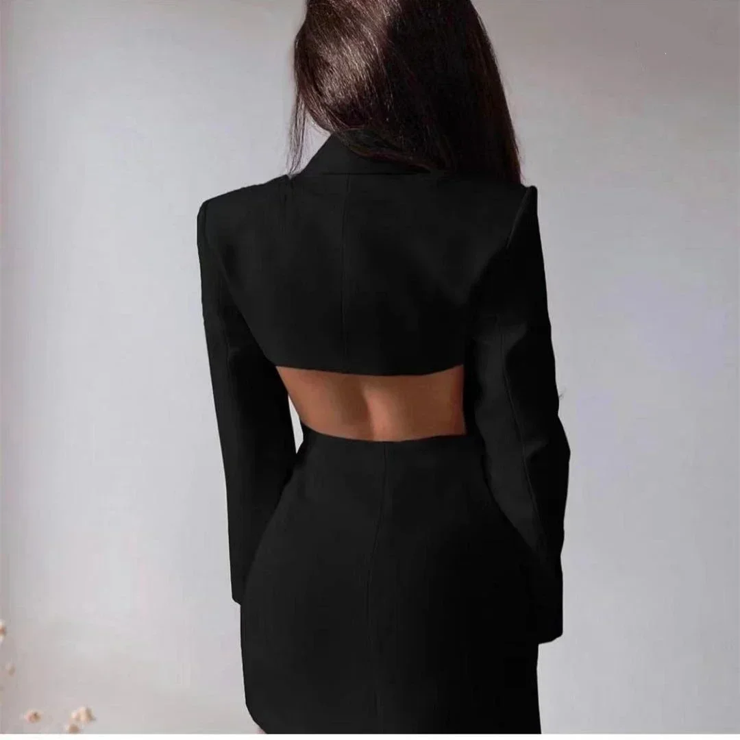 Women Elegant Blazer Solid Double Breasted Backless Long Sleeve Thin Slim Blazers Office Lady Fashion Suits