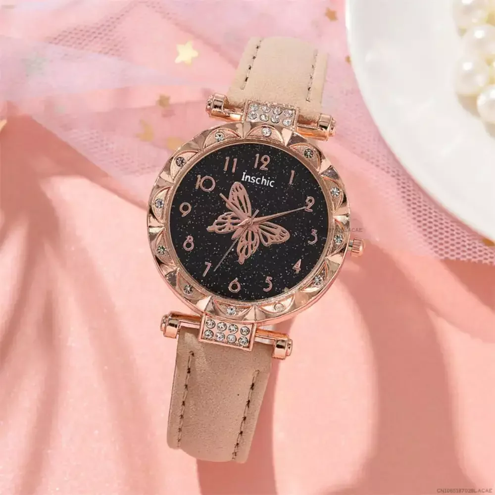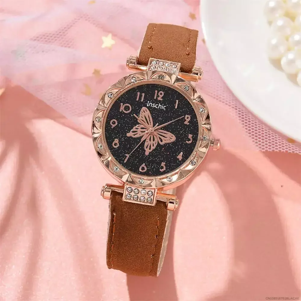 Women Fashion Watch Set No Box Quartz Wristwatch Luxury Crystal Rhinestone Pearl Quartz Watches Butterfly Watches Bracelet Set
