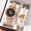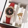 Women Fashion Watch Set No Box Quartz Wristwatch Luxury Crystal Rhinestone Pearl Quartz Watches Butterfly Watches Bracelet Set