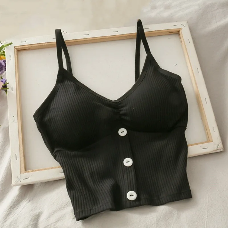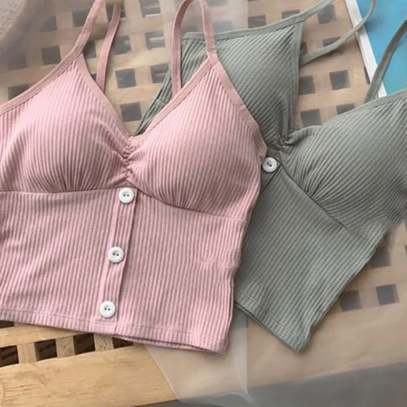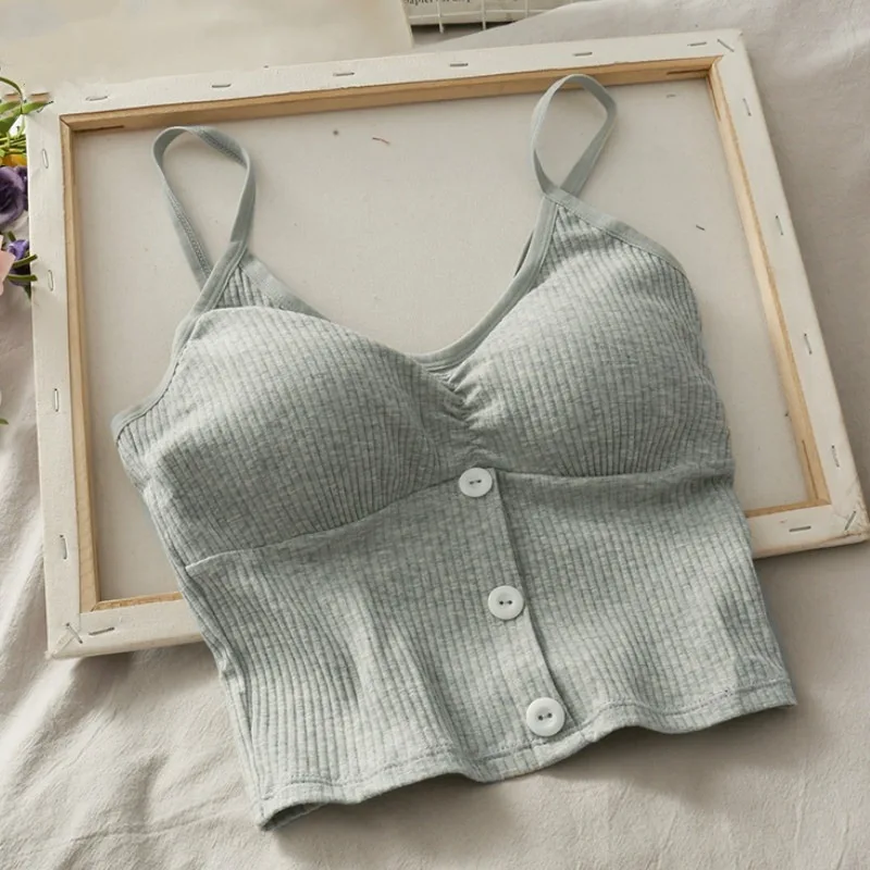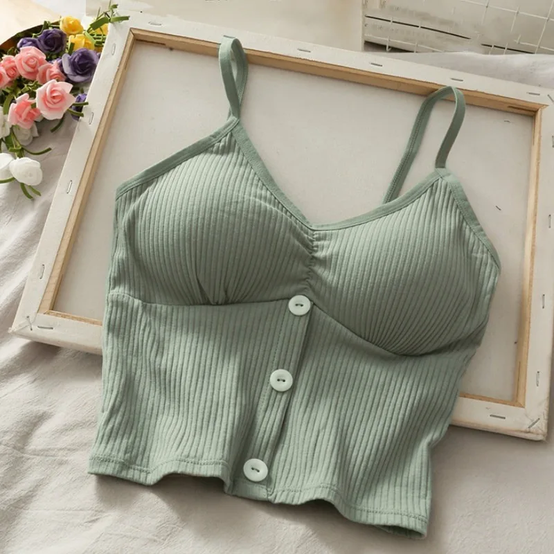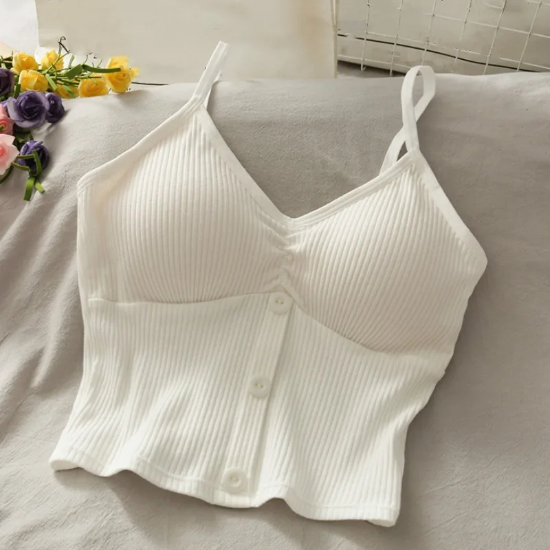 Women Knitted Tank Top Strap Vest Female Knitting Crop Top Chest Wrap Pure Cotton Underwear Camisoles