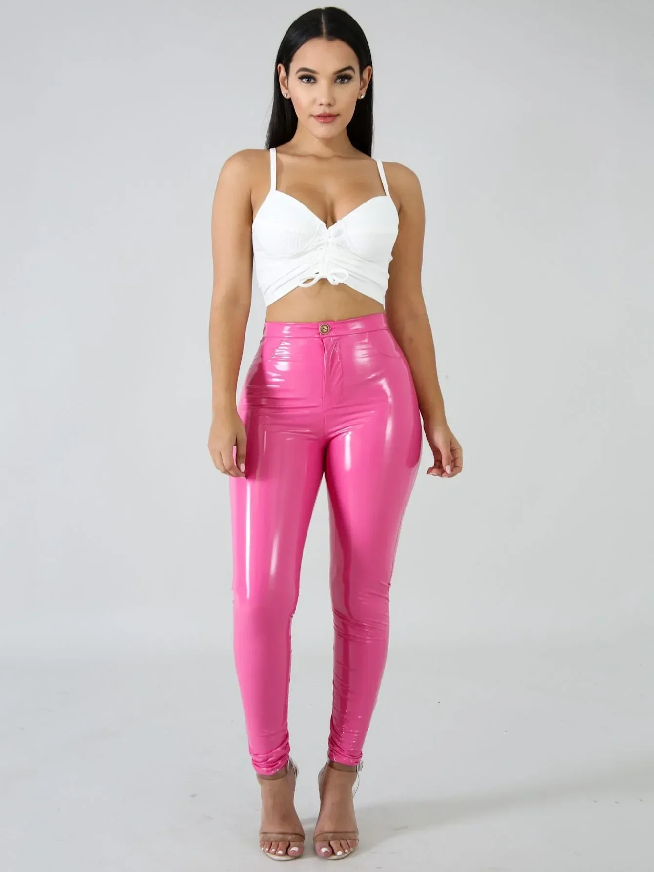 Women Latex Faux Pu Leather Pants Trousers Push Up High Waist Skinny Pants Pencil Fall Winter Solid Color Sexy Pants Female