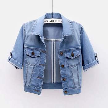 2025 New Spring Summer Women Short Denim Jacket Fashion Slim Jeans Cape Coat