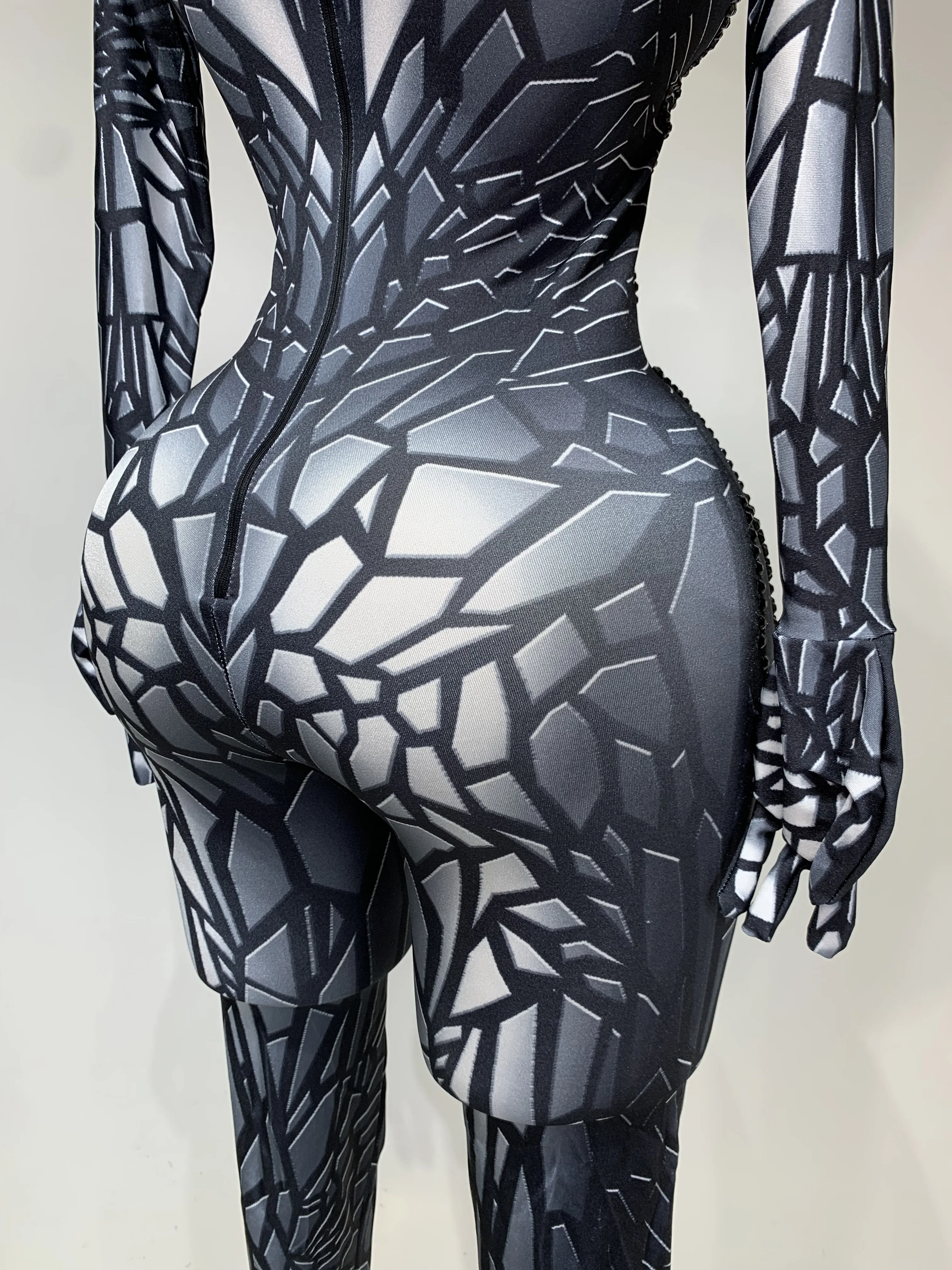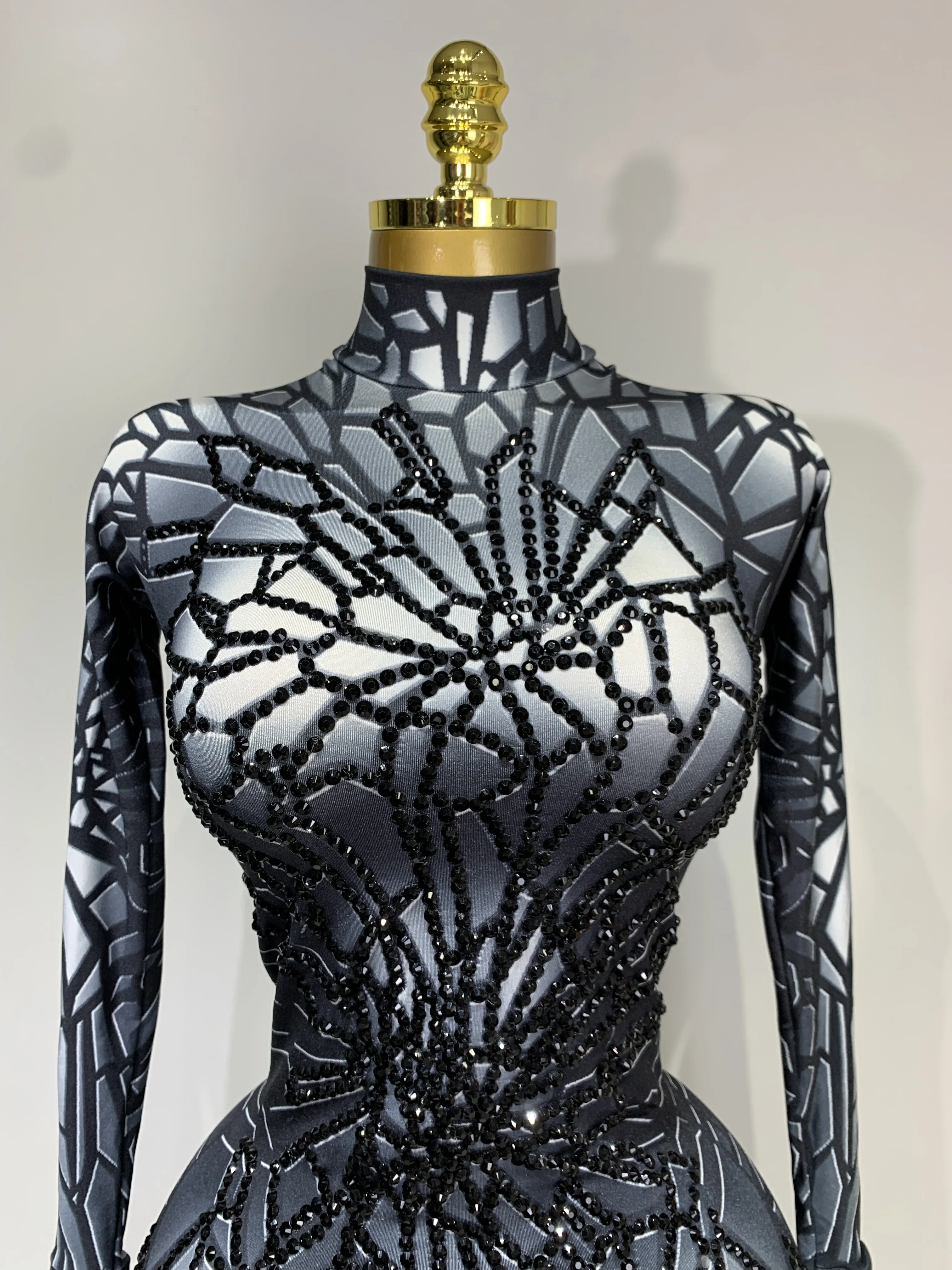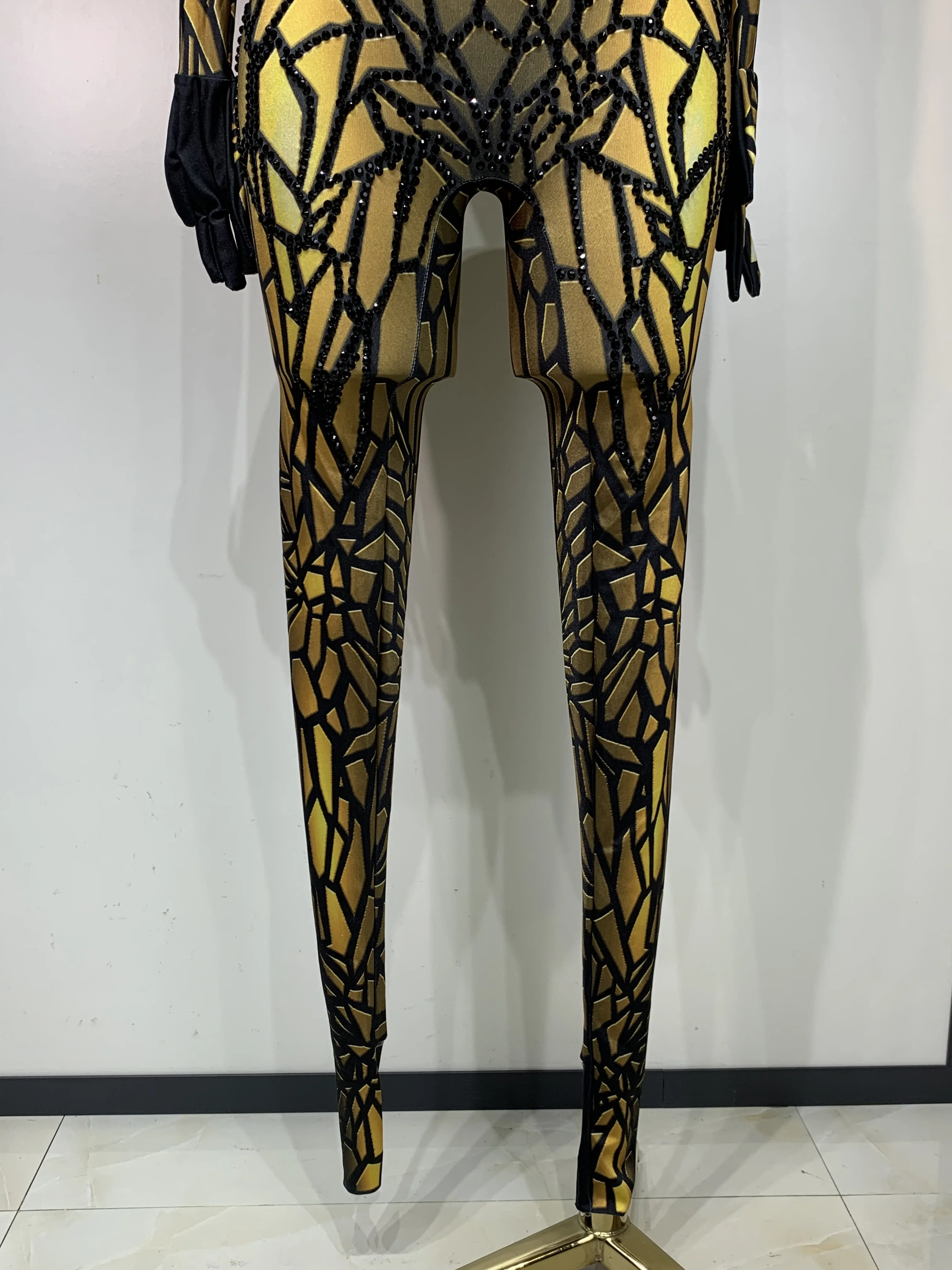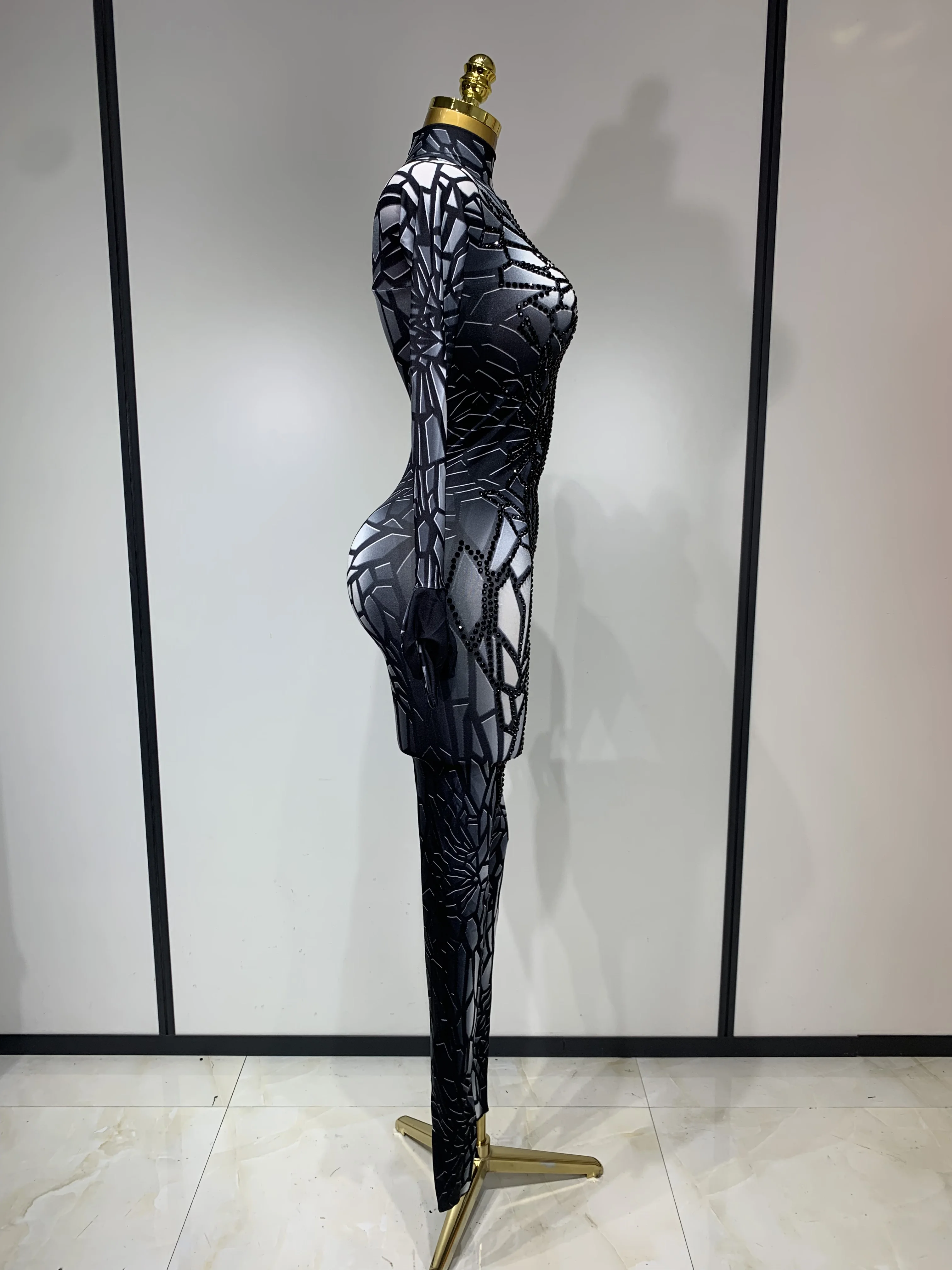 Women Sexy Black Rhinestone Stretch Bodycon Jumpsuit Club Evening Party Birthday Wear Singer Dancer Stage Perform Costume