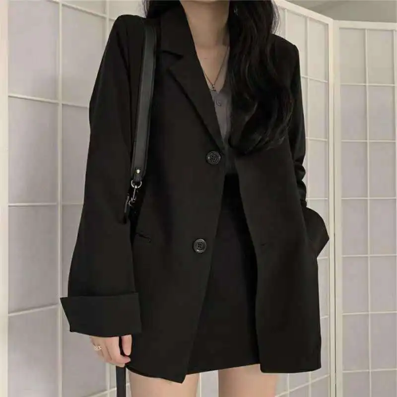 Women Spring Autumn Casual Office Lady Blazers Solid Notched Long-sleeve Suit Female New Fashionable Loose Button Casual Jacket