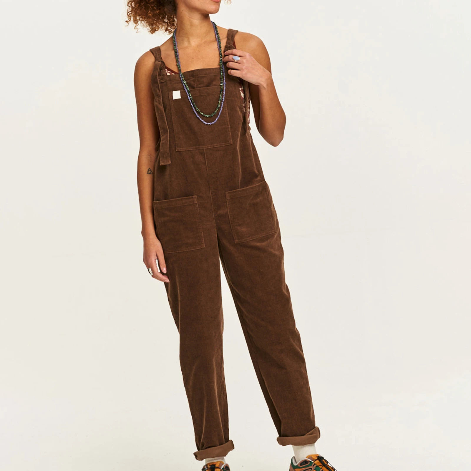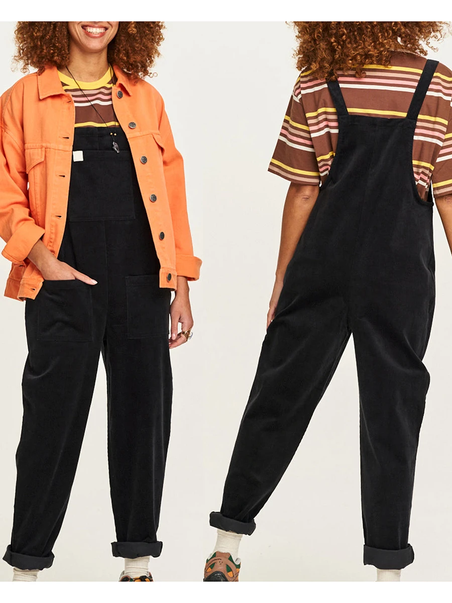 Women’s Corduroy Overalls Solid Color Square Neck Pants Jumpsuit with Front Pockets Casual Streetwear