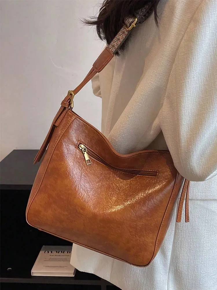 Women’s Elegant Vintage Crossbody Bag,Trendy Plain Color Crossbody Bag withEthnic Pattern Strap, FashionableCrossbodv Bag