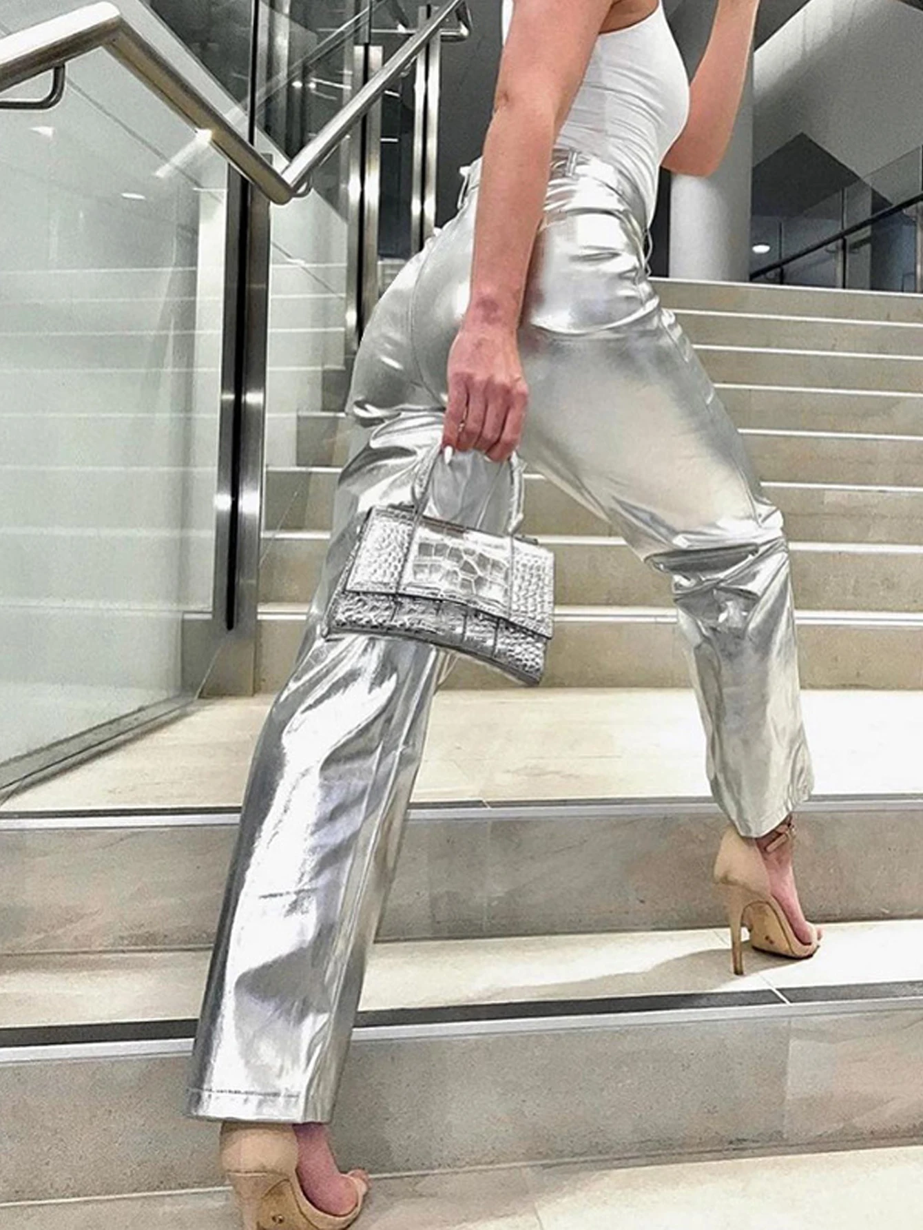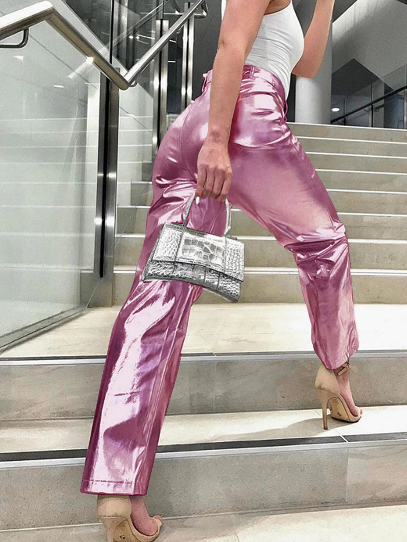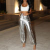 Women’s High Waisted PU leather pants candy colored casual Clubwear Night Party Long Pants