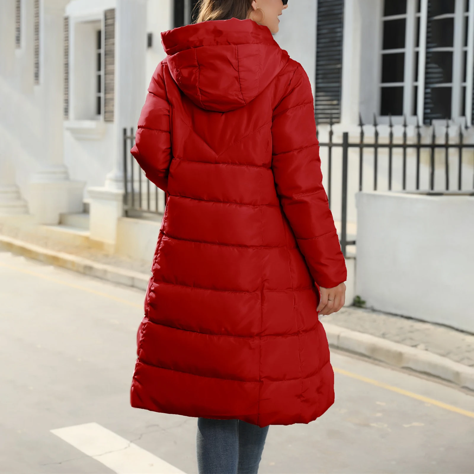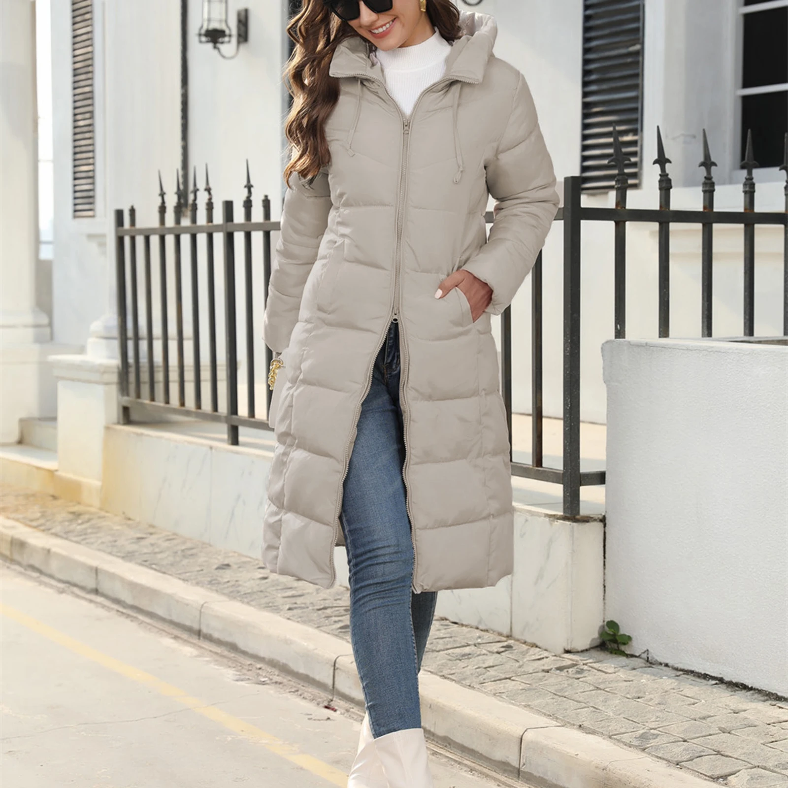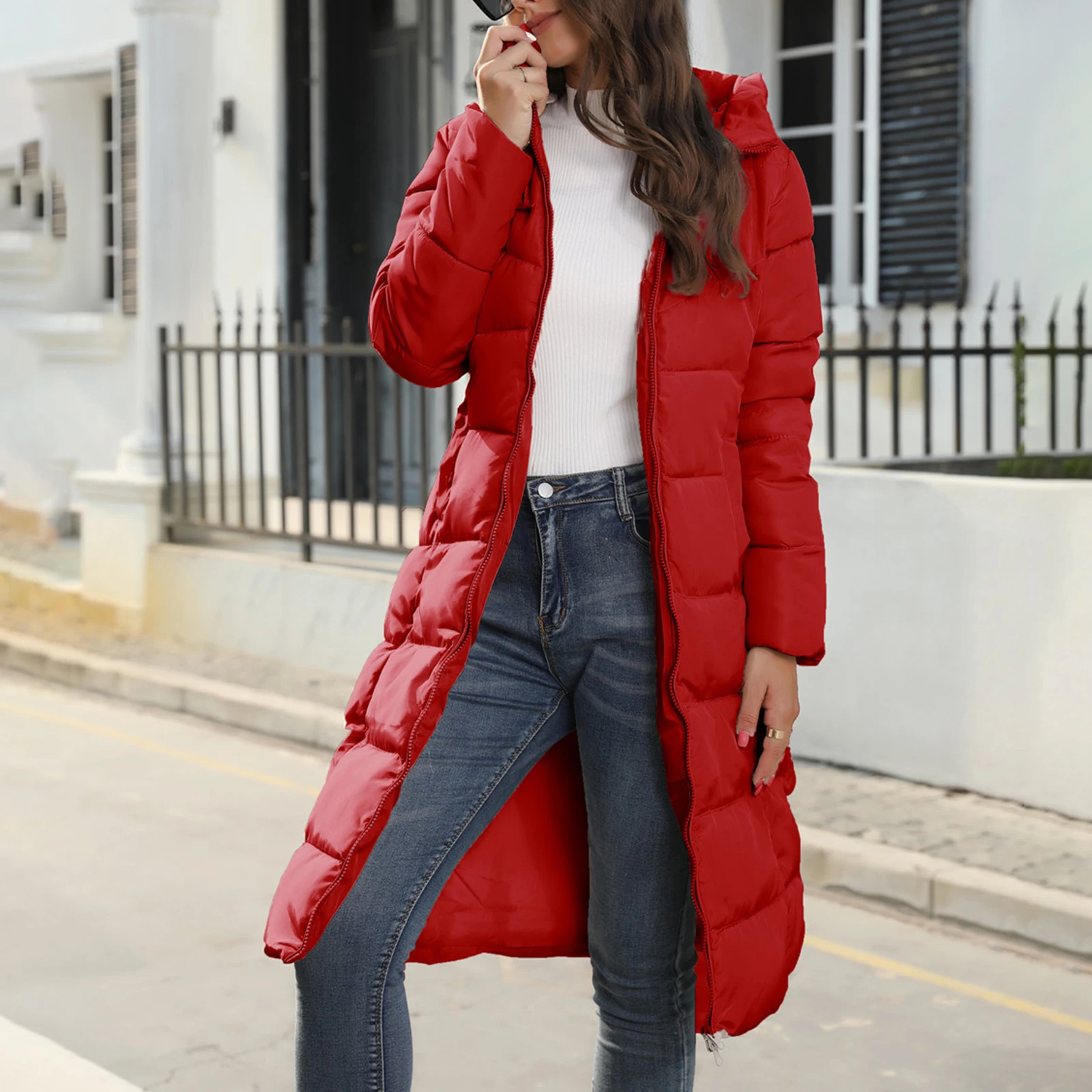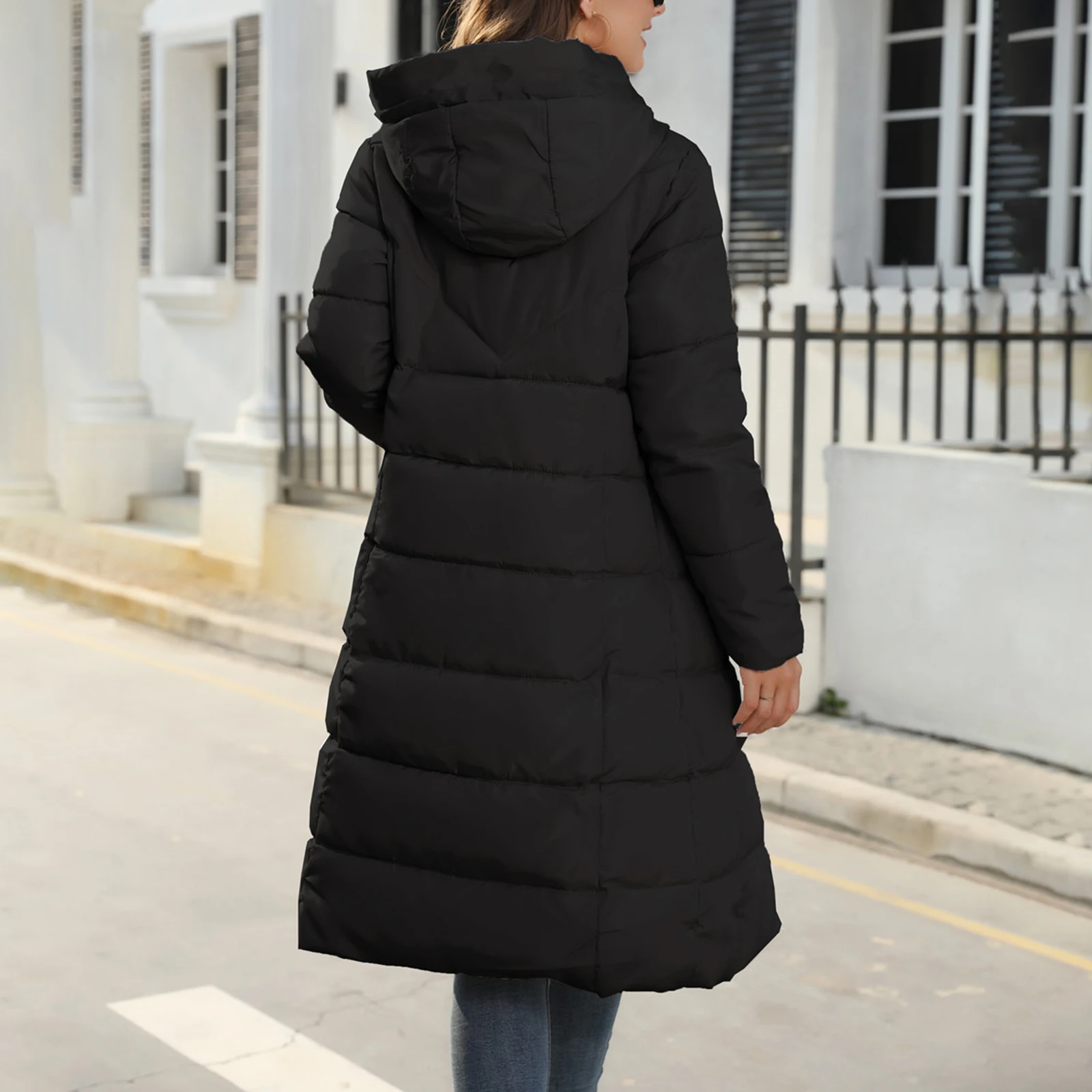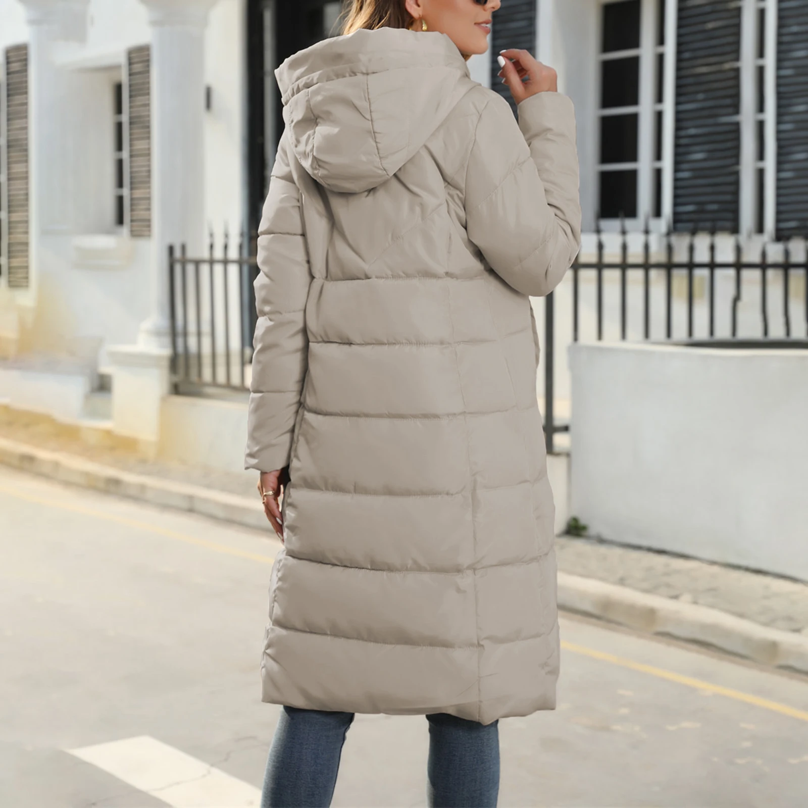 Women’s Long Puffer Jacket Winter Warm Quilted Coat Long Sleeve Zip Up Outwear with Hood Casual Outfits Streetwear Autumn
