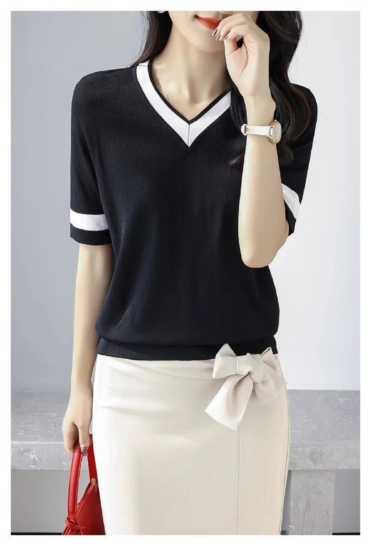 Women’s Short Sleeve V Neck Sweaters Casual Summer Sweater Lightweight Knit Pullover Tops