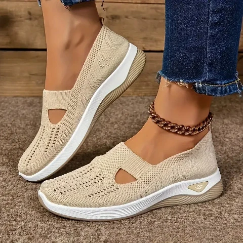 Women’s Solid Color Breathable Sneakers, Soft Sole Lightweight Slip On Walking Shoes, Low-top Knitted Casual Shoes