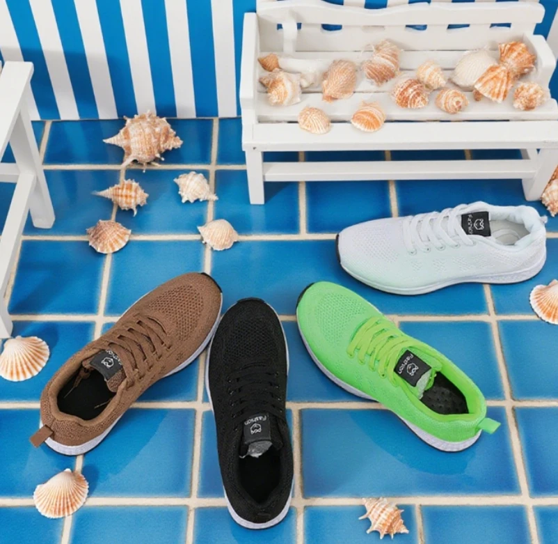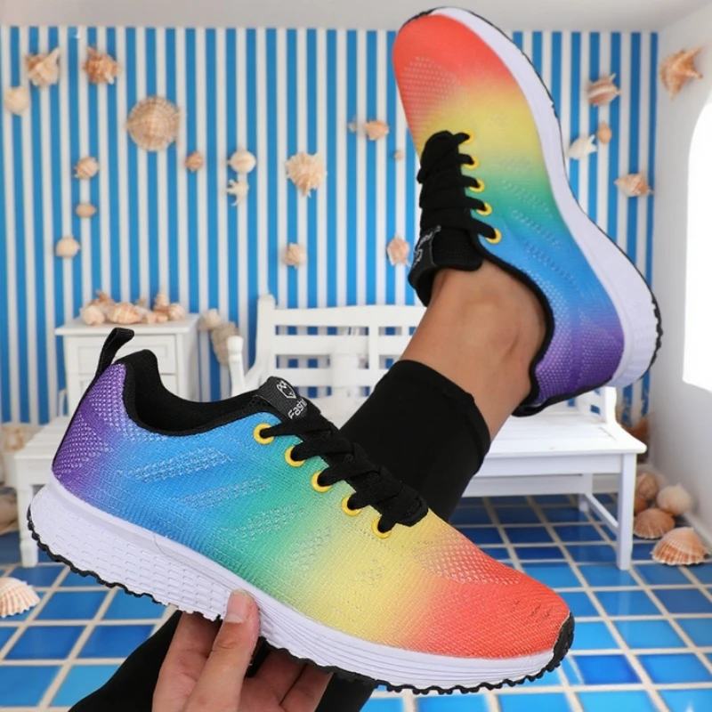 Women’s Sneakers Colorful Trendy Fashionable Luxurious Lightweight Running Shoes Breathable Comfortable Mesh Balanced Flat Shoes