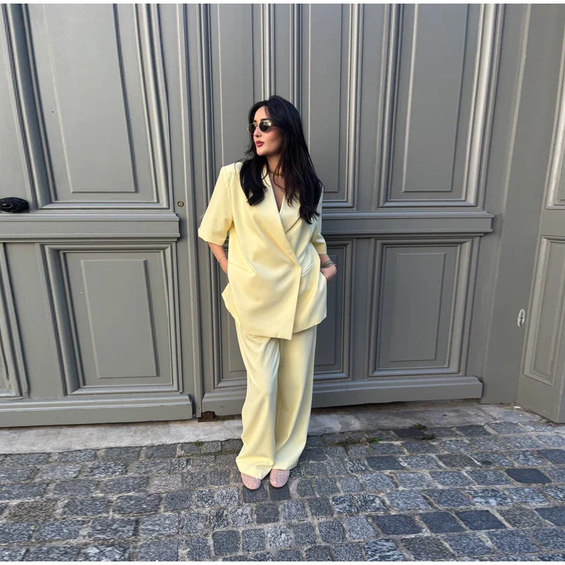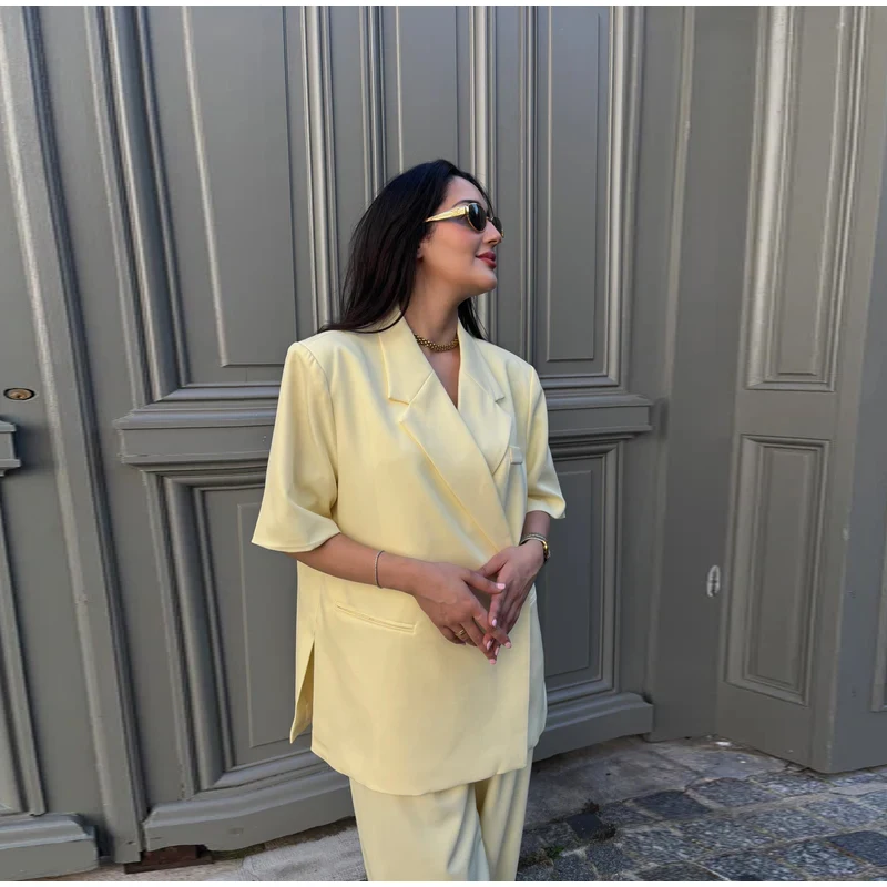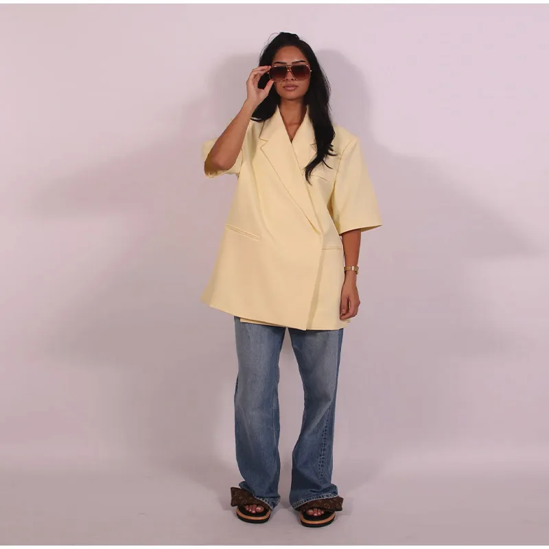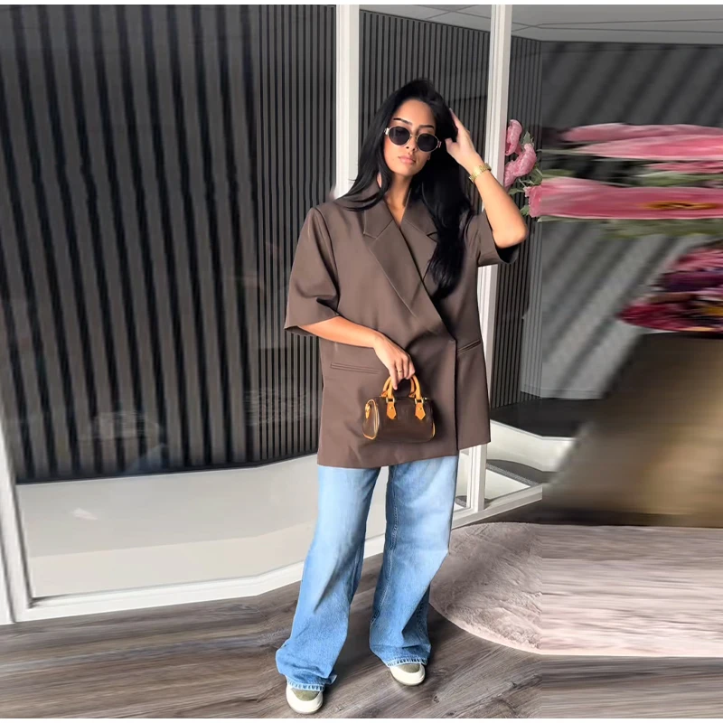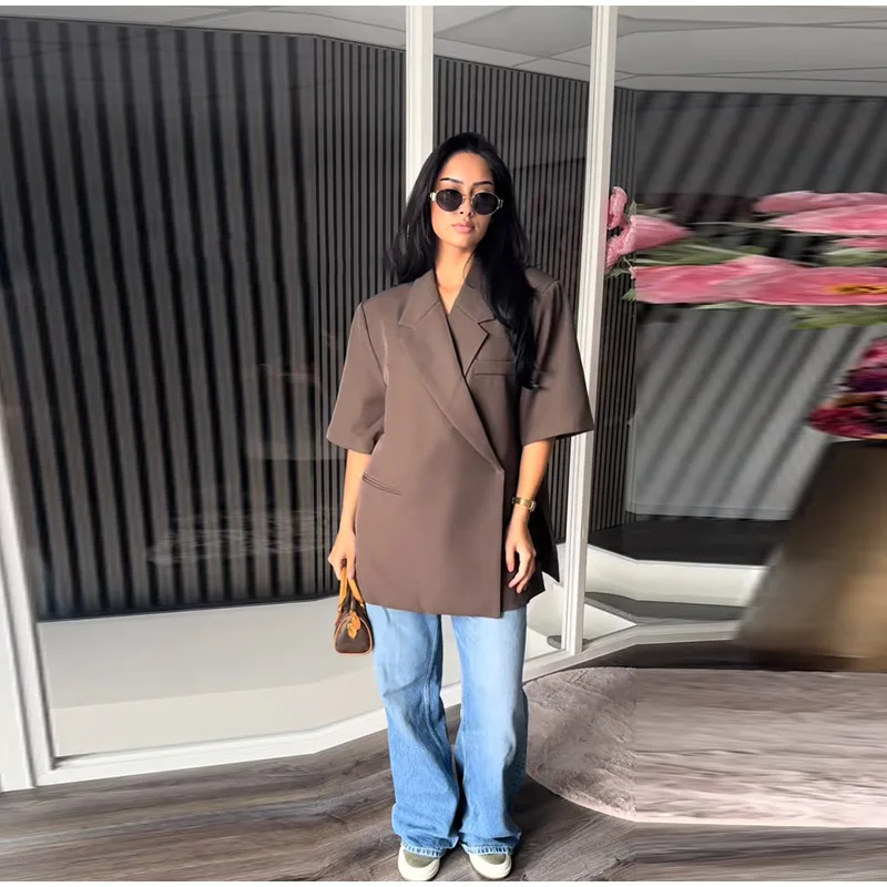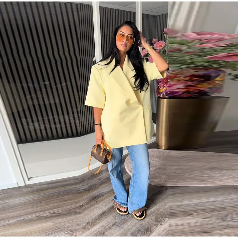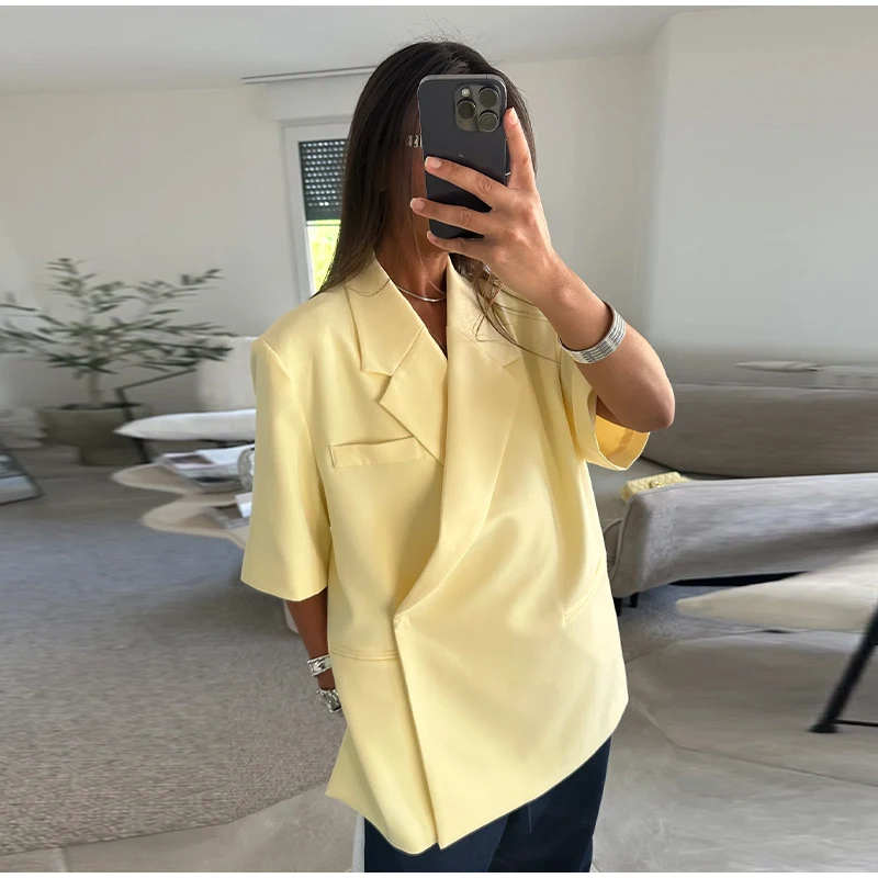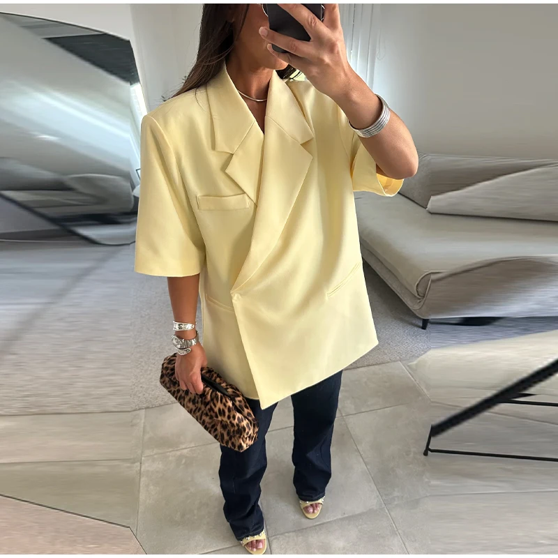 Women’s Suit Jackets Loose Lapel One Button Short Sleeve Blazers 2025 Summer Elegant Lady Office Outwear Street