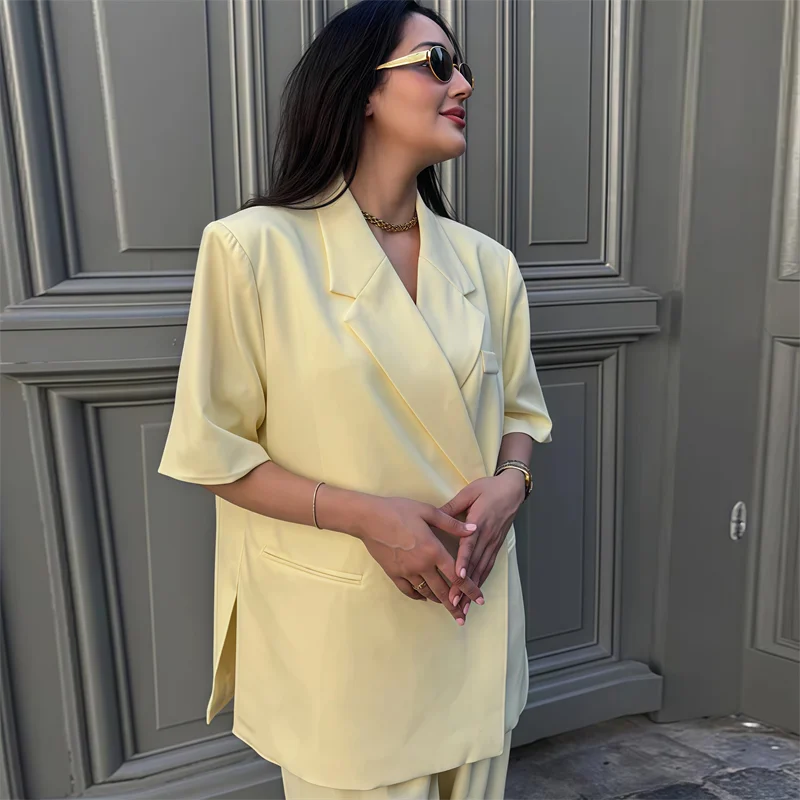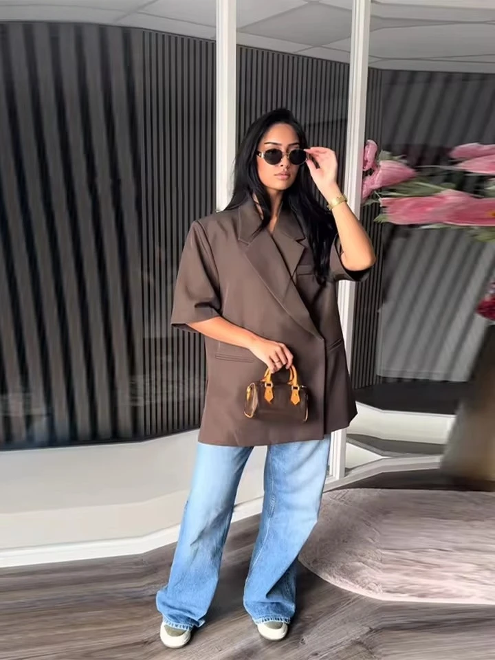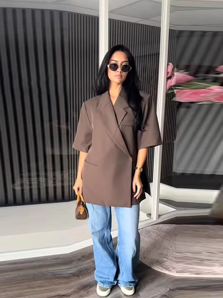 Women’s Suit Jackets Loose Lapel One Button Short Sleeve Blazers 2025 Summer Elegant Lady Office Outwear Street