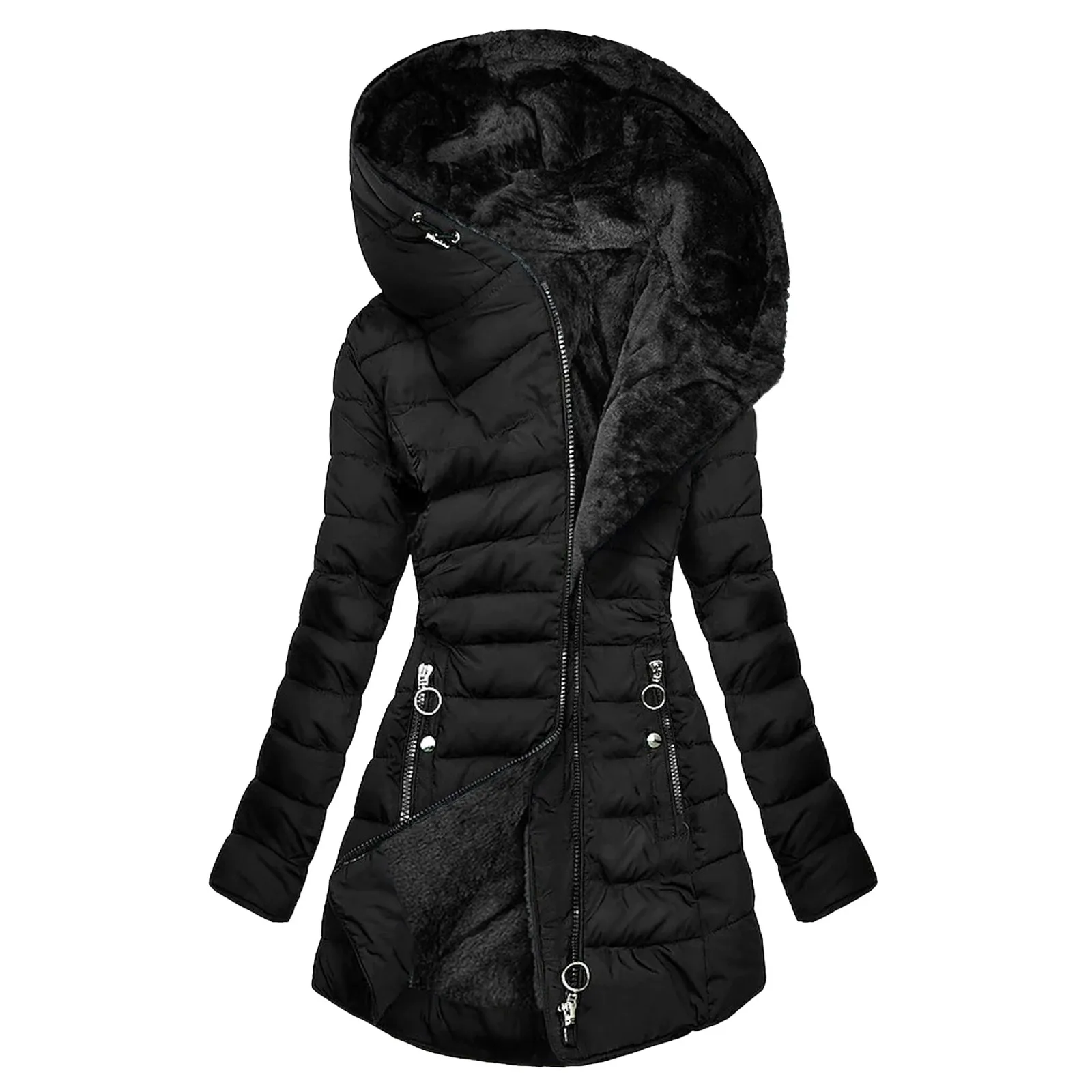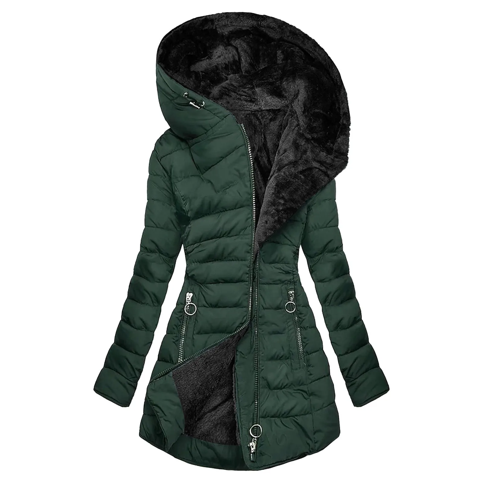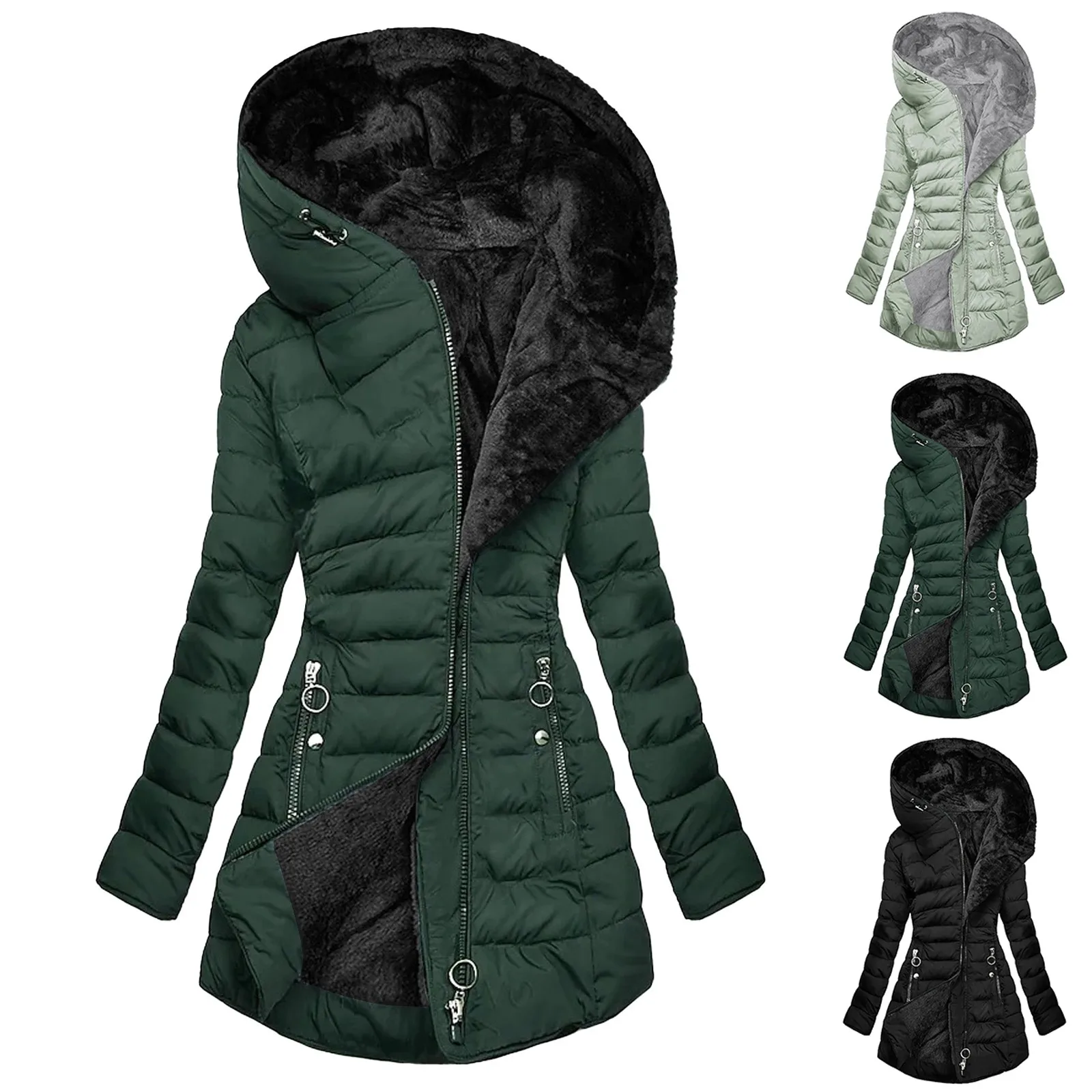 Women Attumn Winter Solid Plush Composite Zipper Long Sleeve Jacket Pocket Outerwear Coat