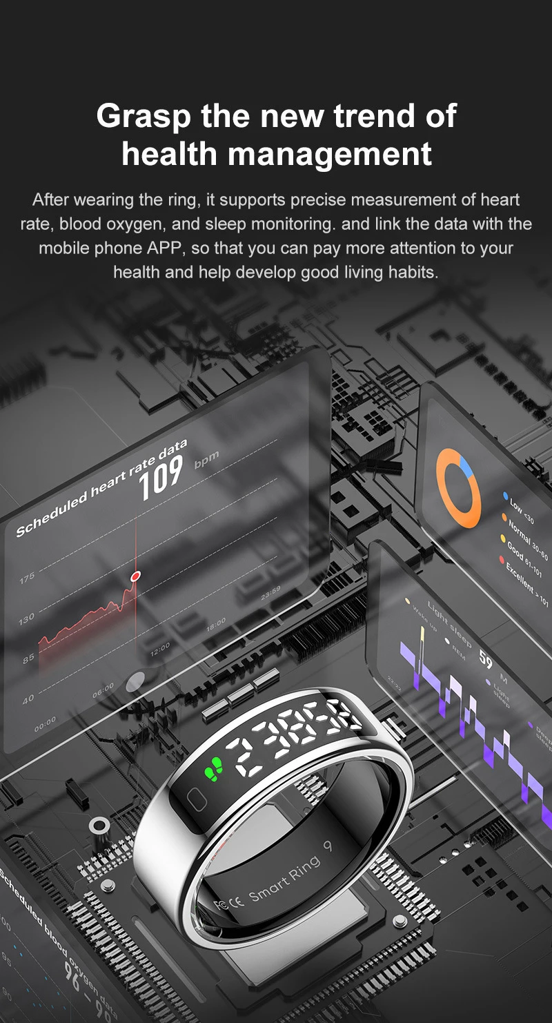 Xiaomi R12 Smart Ring Touch Display Screen 5ATM Waterproof Bluetooth Health Monitor