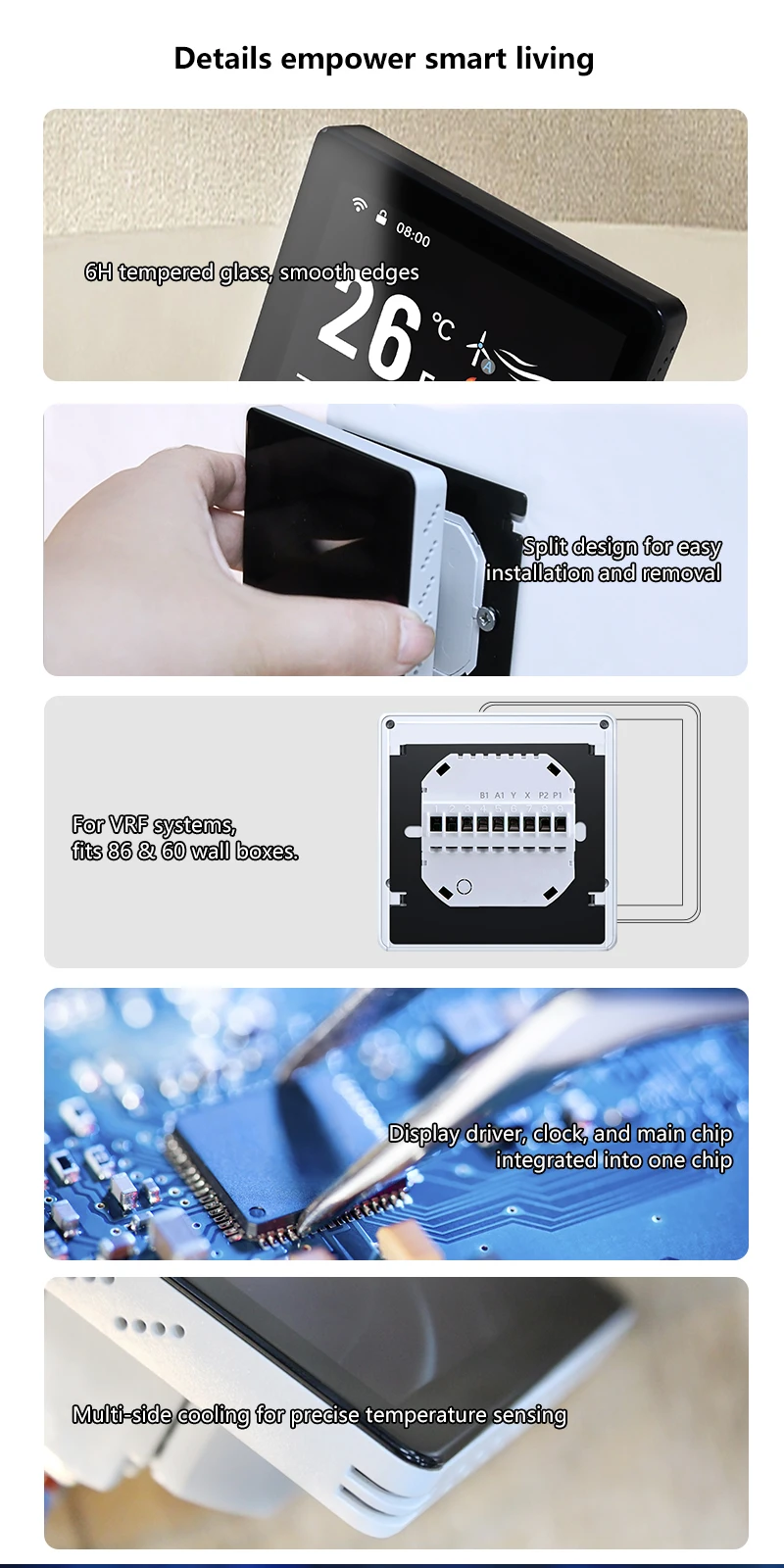 Four system modes: cooling/heating/ventilation/dehumidification;