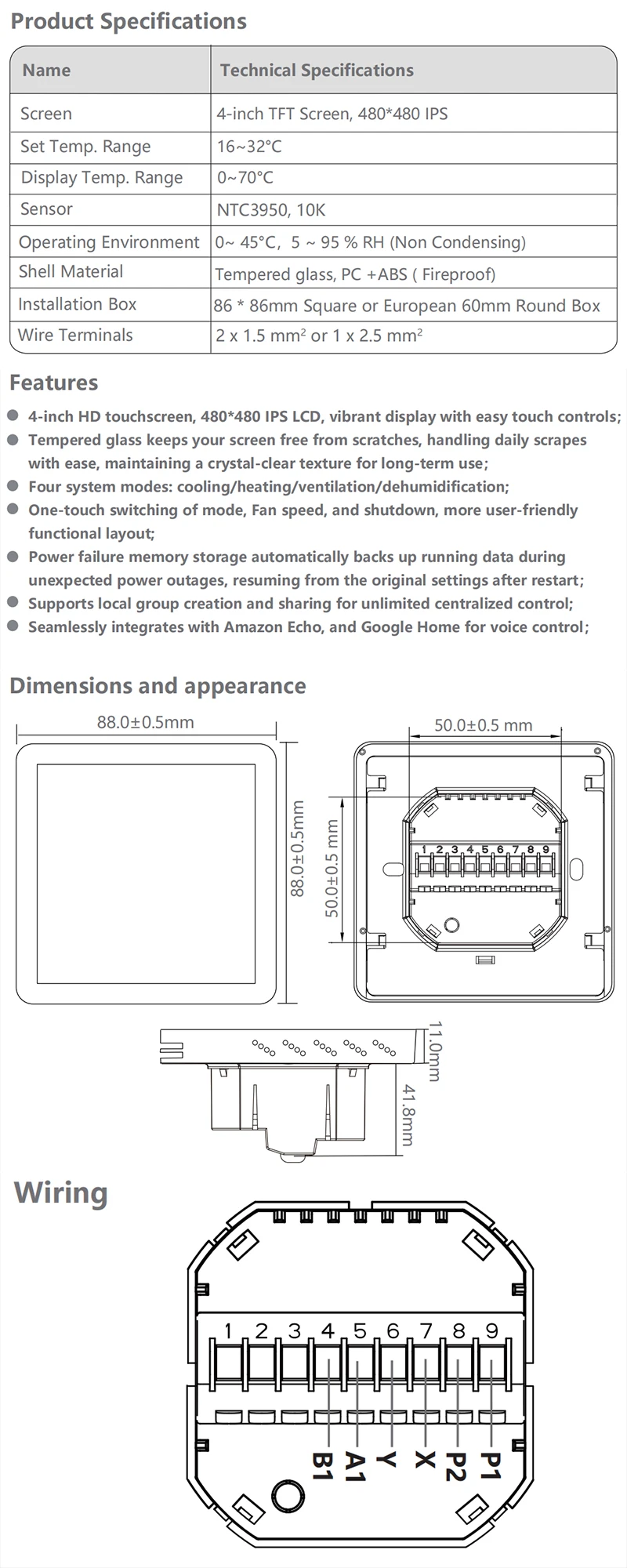 Shell Material: Tempered glass, PC +ABS (Fireproof)