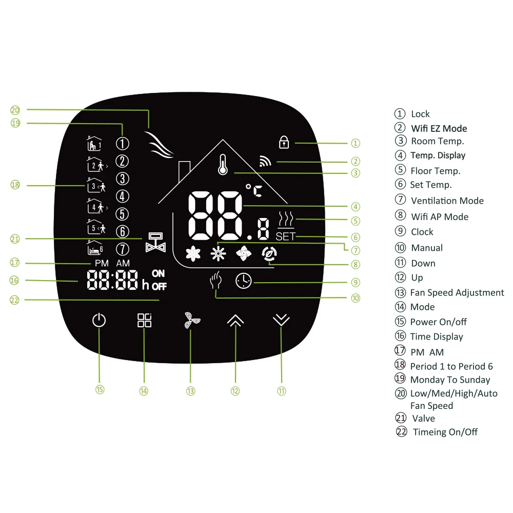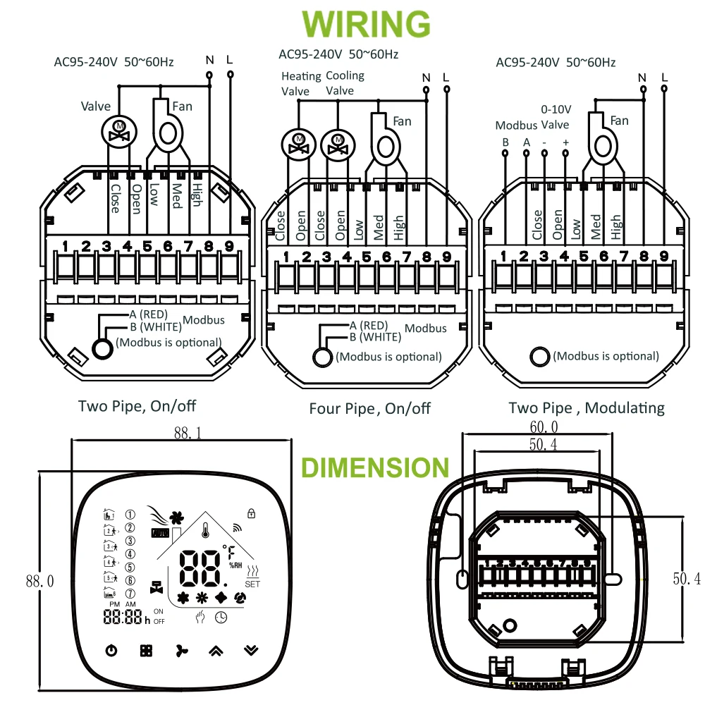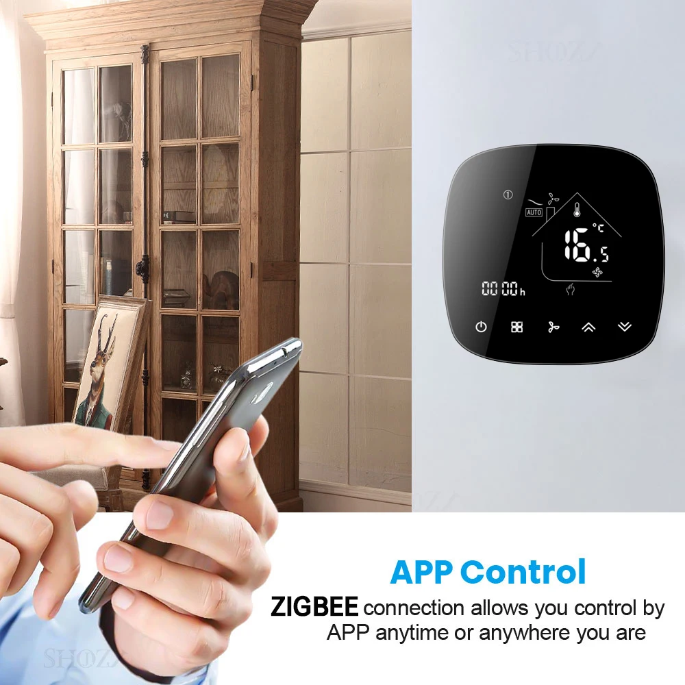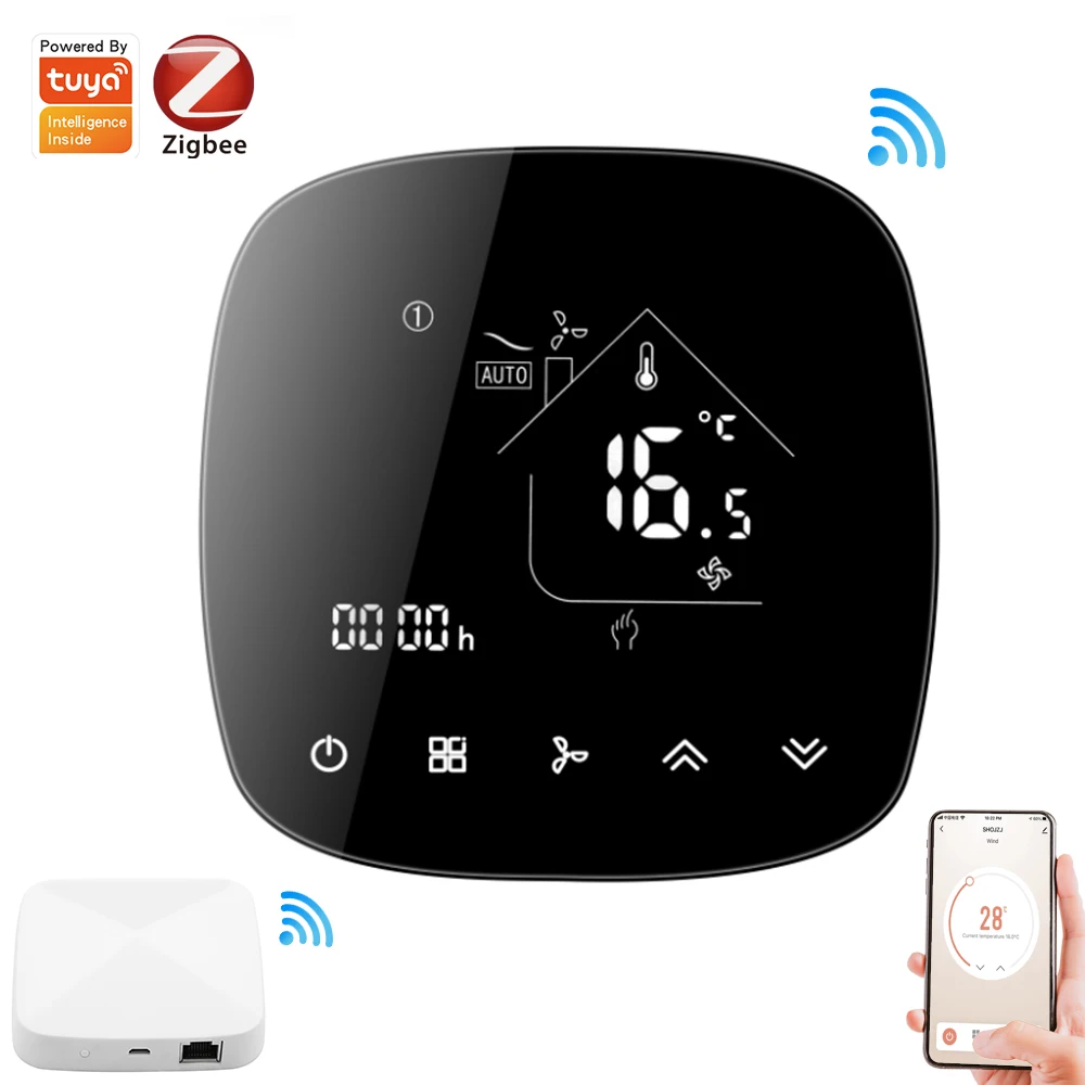 ZIGBEE TUYA 2MQTT WIFI Central Air Conditioner Thermostat Temperature Controller 2 Pipe 4 Pipe 3 Speed Fan Coil Unit Home Temperature Controller